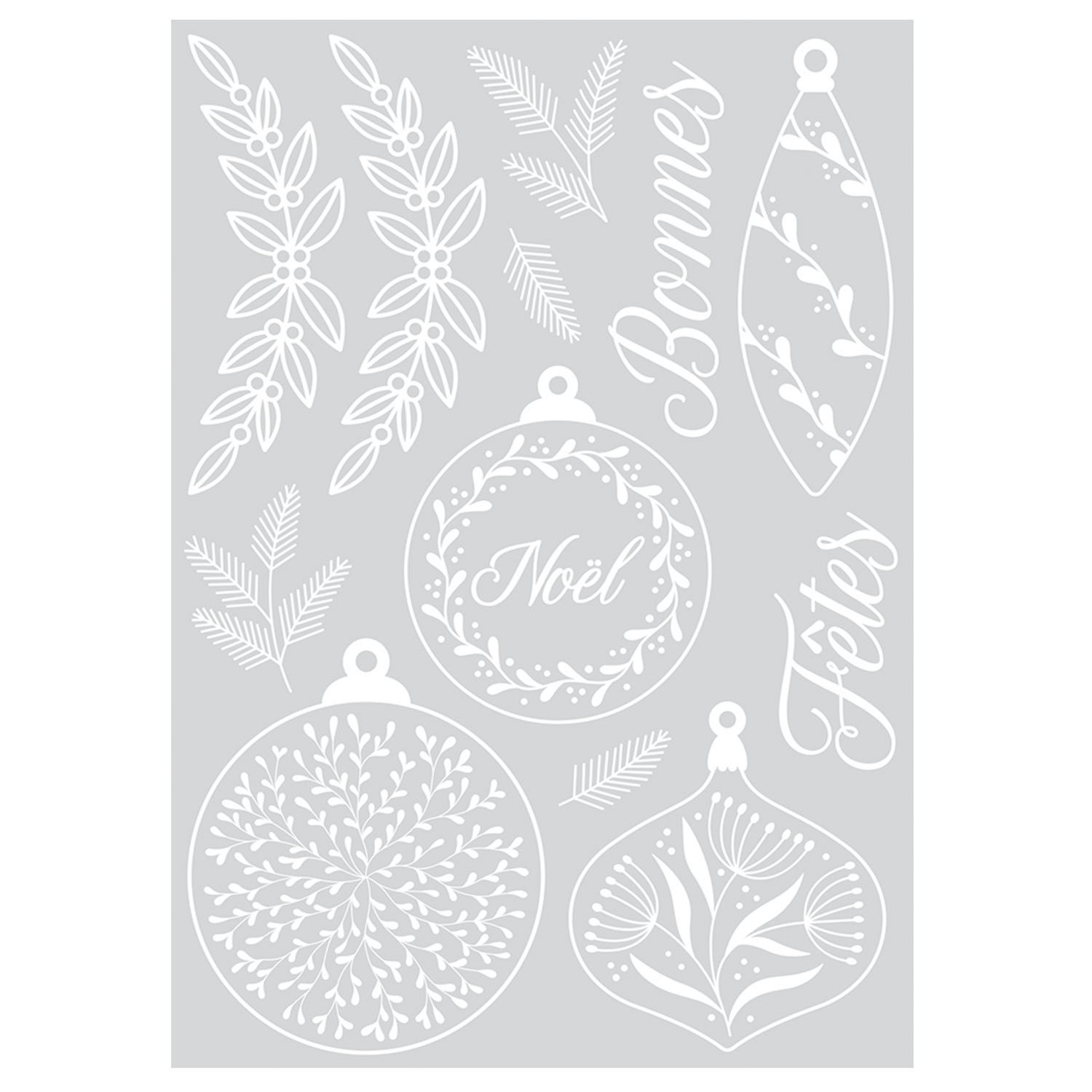 Autocollants pour fenêtre sur le thème de Noël. Ces stickers électrostatiques sont très faciles à placer et à enlever. Les autocollants statiques sont adaptés à toutes les surfaces lisses. Ces films adhésifs conviennent parfaitement comme stickers temporaires pour les vitres. Motifs : 4 boules de Noël, de végétaux et 1 inscription 'Bonnes Fêtes'. Dimensions : 24,9 x 15 cm (format A5). Collection 'Splendid Christmas' d'Artemio. Quantité : 1 feuille. En complément, découvrez aussi toutes nos peintures repositionnables pour vitres !