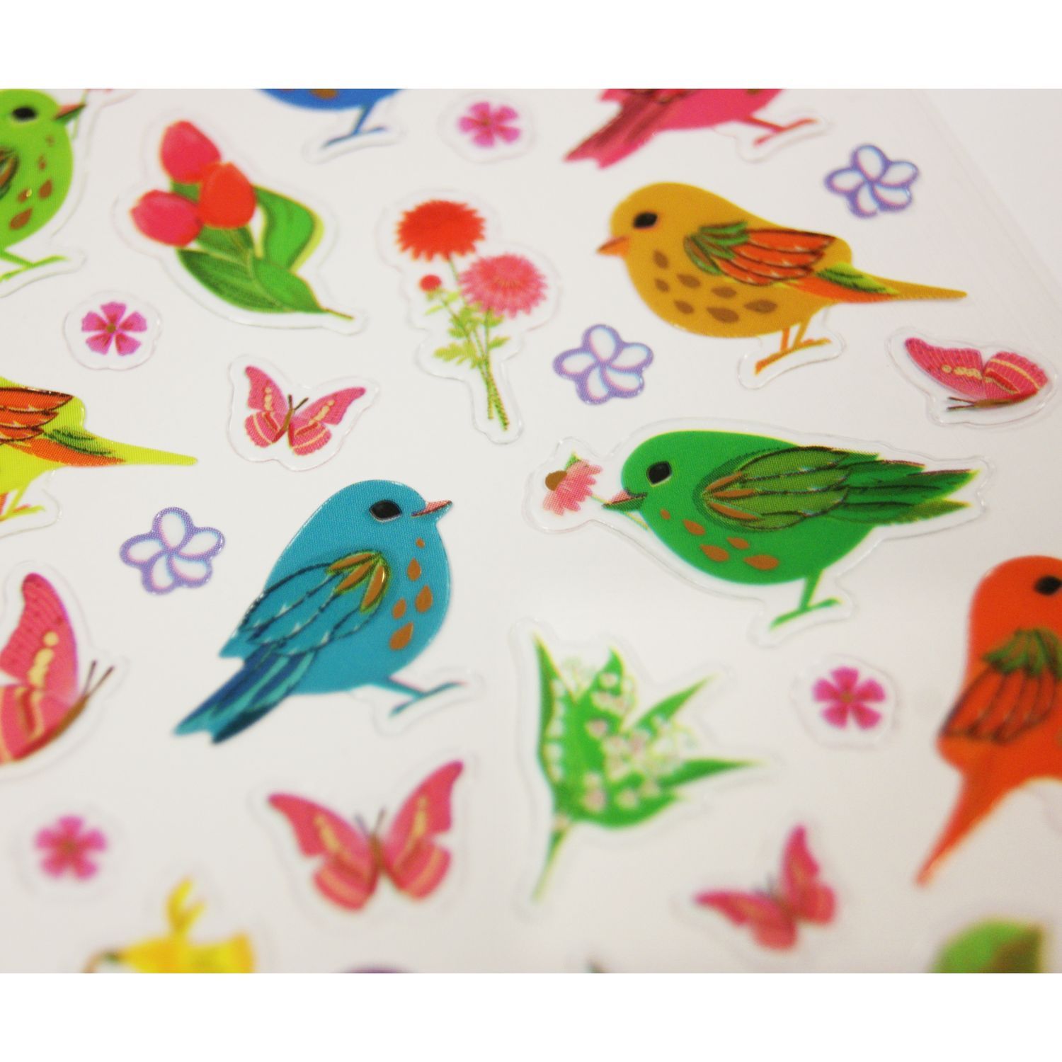 Stickers Oiseaux et fleurs - Paillettes - 7,5 x 10 cm