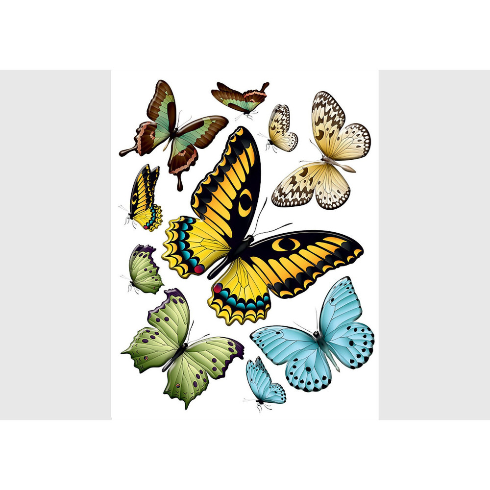 Stickers Papillons Jaunes Verts Bleus - 1 planche 65x85 cm