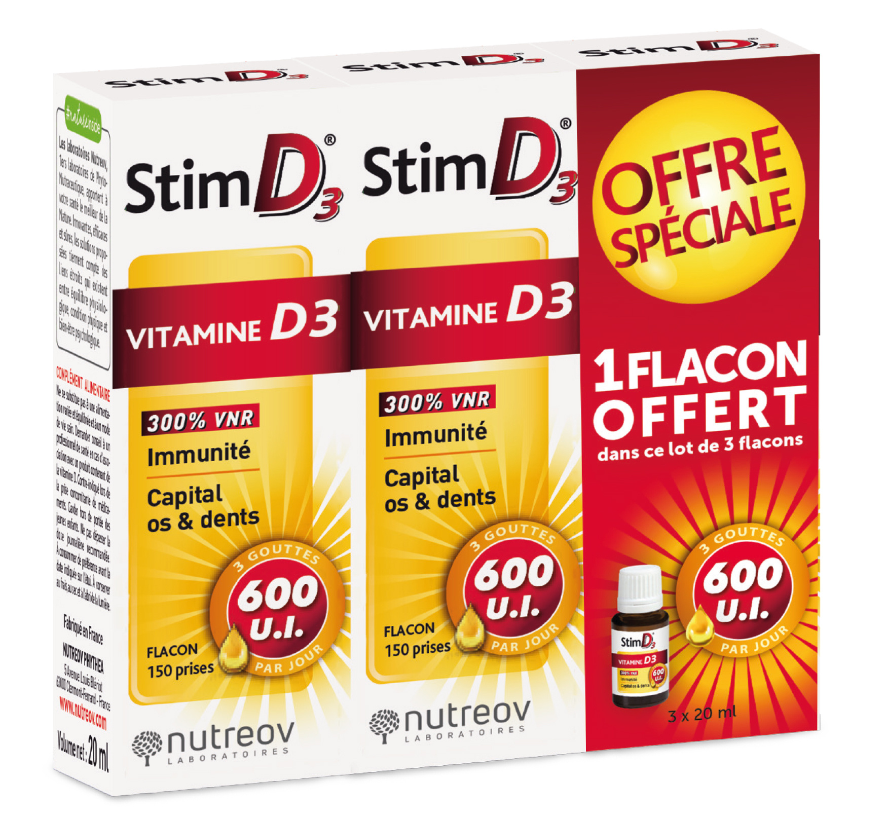 | Libellé | Stim D3 Vitamine D3 Flacon 20ml - Tripack - 1 Flacon Offert 3 x 20ml |