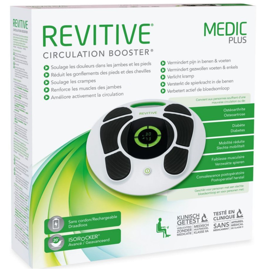 2305-2469md - stimulateur circulatoire - Stimulateur circulatoire MEDIC PLUS Revitive 2305-2469MD haute performance. Notre appareil le plus innovant et le plus puissant. 2 brevets - Système IsoRocker et WidePulse Waveforms : Améliorer activement votre circulation. Réduire les douleurs dans les jambes et les pieds. Soulager les crampes. Réduire les gonflements des pieds et des chevilles. Renforcer les muscles des jambes.99 niveaux d'intensitéAvec 99 niveaux d'intensité, le REVITIVE Medic Plus peut être adapté pour répondre à une gamme plus large de besoins en matière de circulation. Cet éventail de niveaux d'intensité fait du REVITIVE Medic Plus un appareil adapté à tout le monde, y compris aux personnes atteintes de certaines conditions médicales et à celles ayant une mauvaise circulation.15 formes d'ondes de stimulationPour éviter l'habituation des muscles (les muscles commencent à se contracter moins efficacement lorsqu'ils répètent trop la même action) ces ondes variables, chacune présentant un motif différent, stimulent les muscles de la meilleure façon lors de chaque session.Formes d'ondes à impulsions larges WidePulseNotre toute dernière découverte dans le domaine des technologies permettant d'améliorer la circulation sanguine. Elles se traduisent par une sensation plus confortable lors de la stimulation.Sans médicamentUtilisant l'Électrostimulation musculaire dont l'efficacité a été prouvée cliniquement, REVITIVE permet d'améliorer activement la circulation veineuse et de soulager l'inconfort sans médicament.Télécommande REVITIVEPour plus de commodité, le REVITIVE Medic Plus peut être actionné à l'aide de sa télécommande. Il peut aussi être actionné manuellement.Électrodes corporellesLa douleur n'affecte pas seulement les jambes et les pieds. C'est pourquoi le REVITIVE Medic Plus inclut une paire d'Électrodes corporelles pour cibler d'autres parties du corps, comme le dos, les épaules et les bras.Plus besoin de le brancherUtilisez REVITIVE Medic Plus partout et en tout temps, même à l'extérieur. Pour encore plus de commodité, le REVITIVE Medic Plus est rechargeable et n'a donc pas à être branché en cours d'utilisation. Finis, les fils encombrants et l'obligation de s'asseoir sur une chaise peu confortable juste pour être à proximité d'une prise de courant.Il peut aussi s'utiliser branché.Nouveau système IsoRocker avancé 20°Le nouveau système IsoRocker avancé permet une plus grande amplitude du mouvement de l'articulation de la cheville reproduisant le mouvement de bascule du pied tandis que les muscles de la jambe se contractent et se relâchent. Ce mouvement de bascule permet un exercice de l'articulation de la cheville sans pression excessive sur les pieds et les jambes.Minuterie ajustableLa minuterie du REVITIVE Medic Plus va de 1 à 60 minutes. Vous pouvez donc ajuster la durée ou ajouter quelques minutes à votre séance habituelle, pour compenser le temps perdu quand vous vous êtes levé pour aller ouvrir la porte ! - Type : Massage.