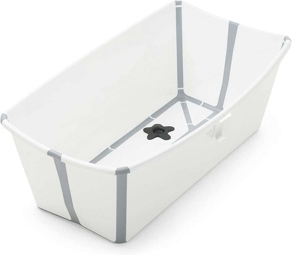 Stokke® Flexi Bath® est une baignoire pliable pour enfants qui peut être utilisée dès la naissance et jusqu'à quatre ans. Son design peu encombrant permet une utilisation facile aussi bien à la maison qu'en déplacement, favorisant ainsi les interactions au moment du bain. Le support pour nouveau-nés Stokke® Flexi Bath® Newborn Support procure encore plus de confort aux nouveau-nés. Chez Stokke, nous nous efforçons continuellement d'améliorer nos produits. Nous proposons donc un bouchon de vidange sensible à la chaleur. En changeant de couleur, ce bouchon permet aux parents de voir en un clin d'il si la température de l'eau augmente et doit être vérifiée. Veuillez noter que ce bouchon de vidange n'est pas un thermomètre. Vérifiez toujours la température de l'eau avec votre main pour vous assurer qu'elle convient parfaitement pour le confort et la sécurité de votre bébé. En cas de doute, utilisez un thermomètre fiable pour en vérifier la température.