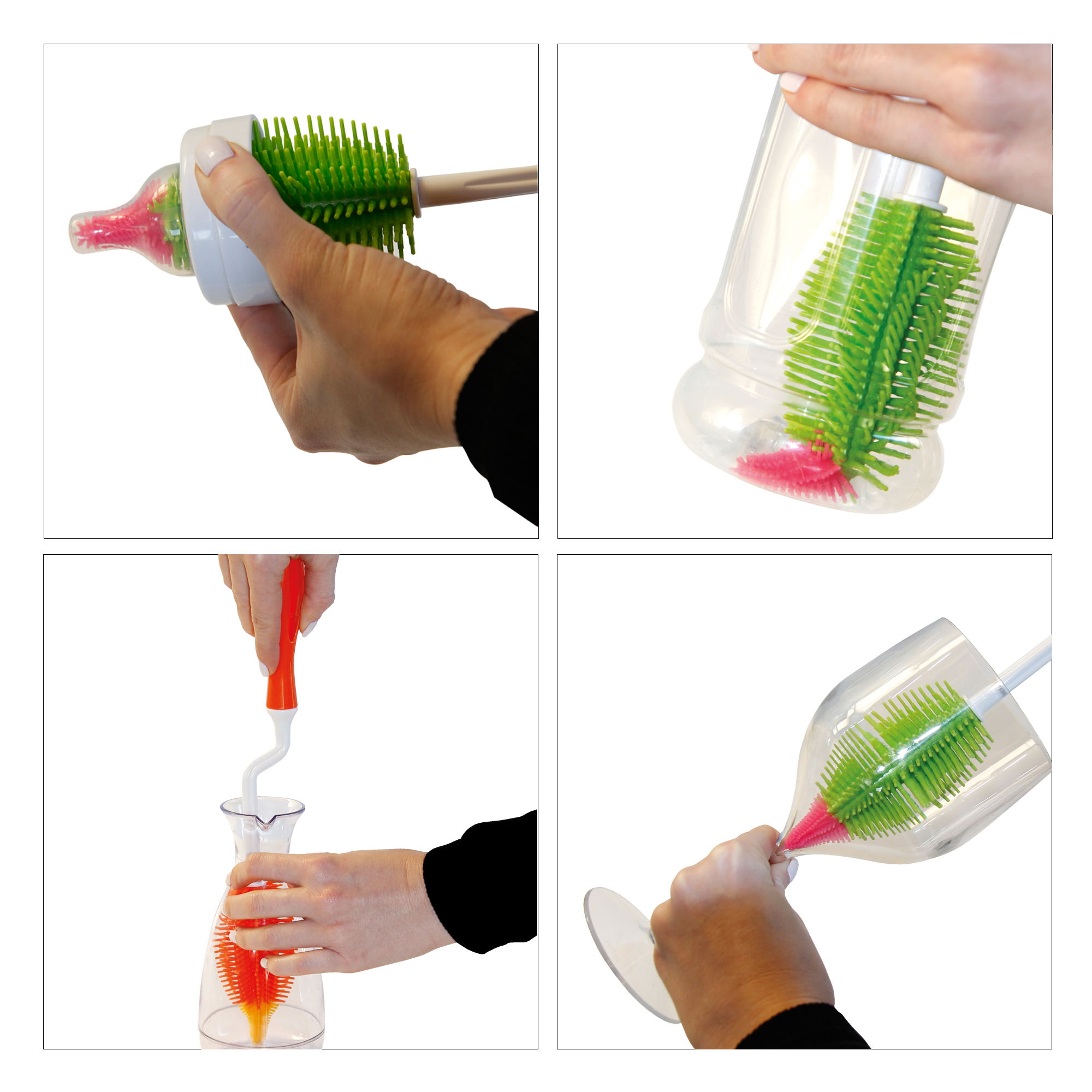 STONELINE® - L’Original ! Avec cette brosse, nettoyez toutes les bouteilles, tous les verres et vases, et bien d'autres encore ! Avec sa pointe en silicone flexible qui pénètre dans les coins et les bords les plus petits, la tête de brosse spécialement formée en silicone hygiénique et durable vous permet d'atteindre n'importe quel endroit. La tête de brosse est faite de silicone alimentaire, elle résiste à la chaleur et passe au lave-vaisselle. Les poils souples en silicone vous permettent de nettoyer en douceur n'importe quelle surface. Aucune rayure ! Le goupillon en silicone est idéal pour les bouteilles à fond irrégulier, pour les verres pointus, pour les flûtes à champagne étroites, et il peut même servir pour les biberons ! Après utilisation, il suffit de nettoyer la brosse sous l'eau courante ou de la mettre au lave-vaisselle. La tête de brosse en silicone peut être stérilisée dans de l'eau bouillante. 1 goupillon en silicone avec manche rotatif, longueur env. 35 cm Couleur : jaune Idéal pour toutes les bouteilles, tous les verres et vases, et bien plus encore N'affecte pas le goût : Les odeurs ne restent pas Tête de brosse en silicone hygiénique et durable Nettoyage facile : rincer avec de l'eau chaude, sécher, c'est terminé Tête de brosse en silicone stérilisable Matériau : silicone, plastique