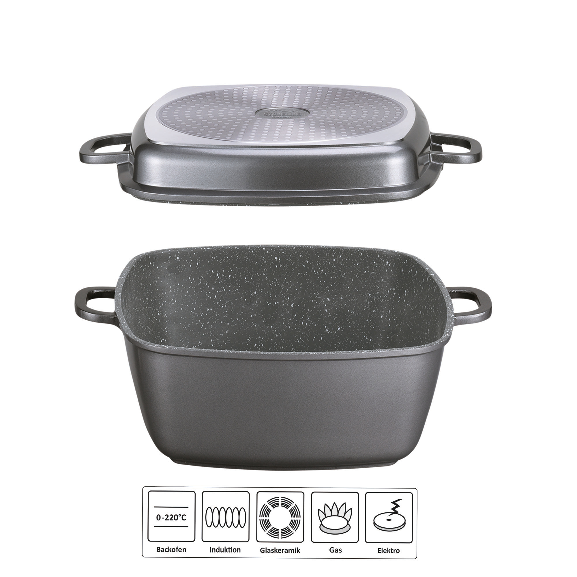 STONELINE® Poêle rectangulaire multifonctions 28 x 28 cm, avec cuisson vapeur et friteuse