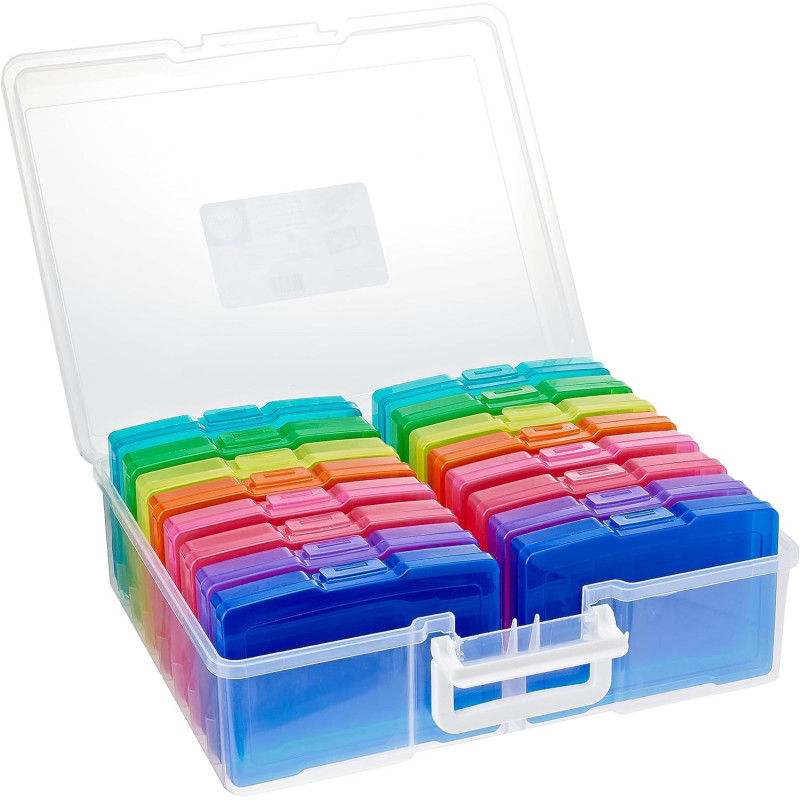 Storage Bin 16 Boites de Rangement;La boîte de rangement en plastique We R Memory Keepers est parfaite pour stocker vos photos, cartes et petits papiers de scrapbooking. Elle est composée de 16 petites boîtes colorées, mesurant environ 16...;Storage Bin 16 Boites de Rangement;La boîte de rangement en plastique We R Memory Keepers est parfaite pour stocker vos photos, cartes et petits papiers de scrapbooking.;Elle est composée de 16 petites boîtes colorées, mesurant environ 16 cm x 11 cm x 2,5 cm chacune.;Les couleurs disponibles sont le turquoise, le vert, le jaune, l'orange, le rose, le rouge, le mauve et le bleu.;Cette boîte de rangement mesure environ 38 cm x 30 cm x 13 cm et est équipée d'une poignée pour faciliter le transport.;C'est donc un accessoire pratique pour organiser vos loisirs créatifs.