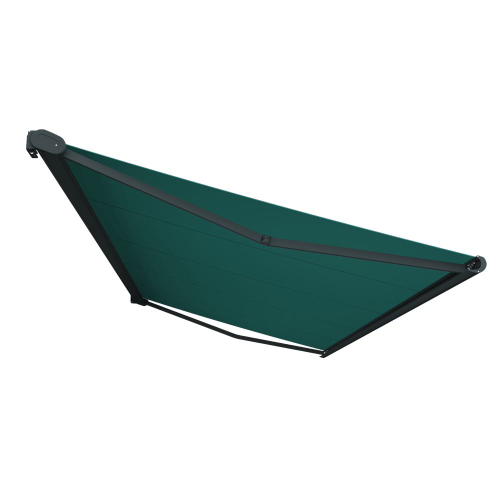 Store banne Coffre intégral PROTECT 2 Gris Anthracite 4,05x3,5m Motorisé à télécommande - Toile Vert