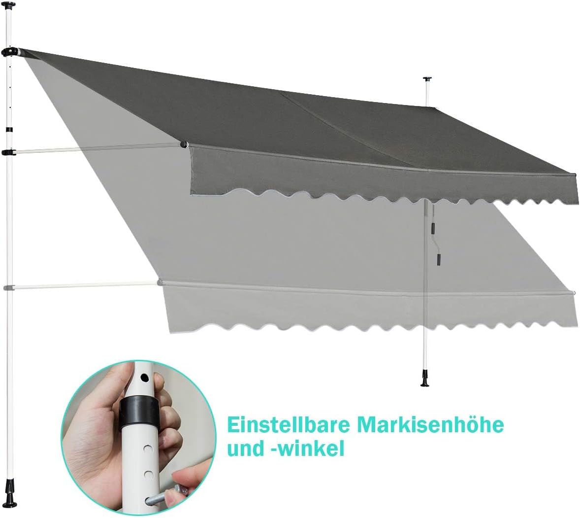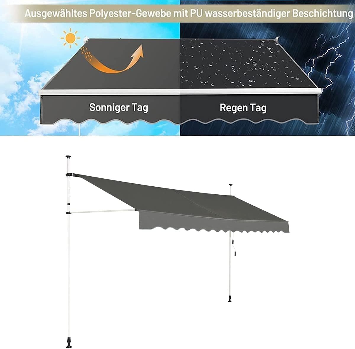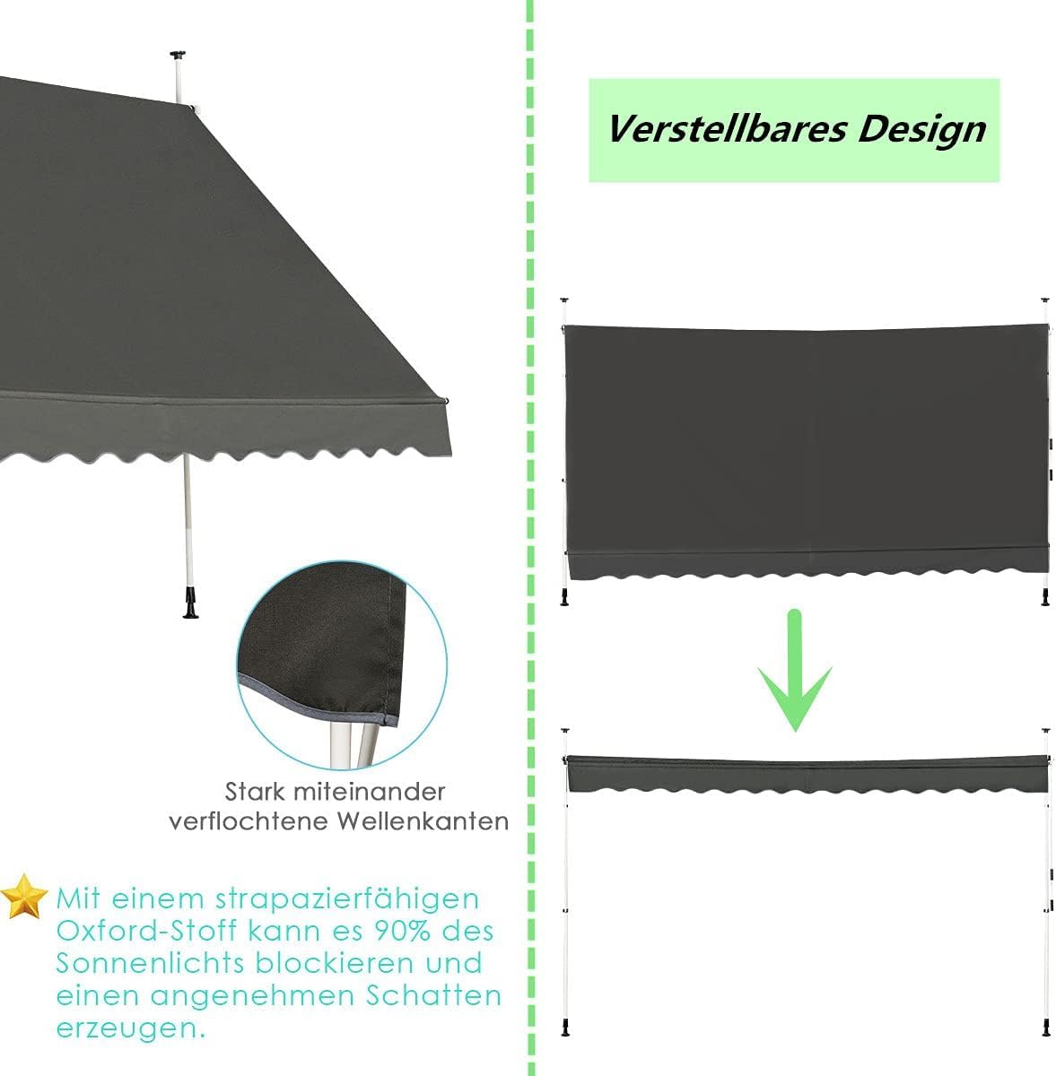 Matériaux de haute qualité : Ce store de terrasse est composé de tubes en aluminium et en fer de haute qualité et d'un tissu Oxford, un matériau stable et durable. De plus, il est non seulement hydrofuge, mais aussi résistant aux UV, ce qui le rend idéal pour une utilisation en extérieur.