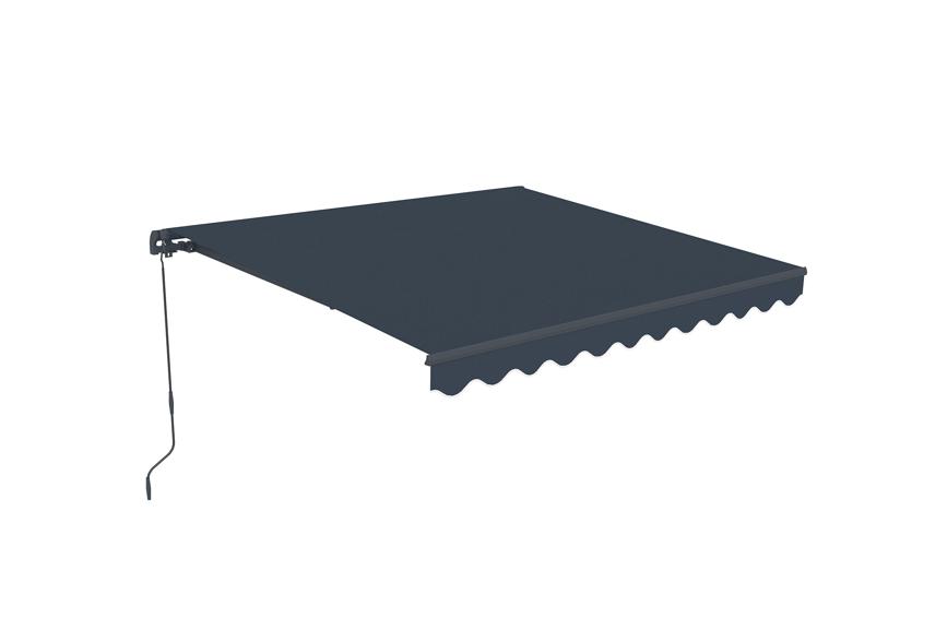 Store banne monobloc manuel Toile grise haute qualité 320g/m² Protection du soleil UV50+ Facile à ouvrir et à fermer Cazeboo est spécialisé dans la pergola, le carport et la tonnelle en KIT, à assembler et à poser soi-même Découvrez notre store banne manuel VECCHIO, l’indispensable pour une protection optimale contre les rayons du soleil, sur votre terrasse ou jardin. Sa simplicité et son élégance en font un élément de décoration essentiel pour sublimer votre espace extérieur, tandis que son coloris gris anthracite ajoute une allure moderne et sophistiquée, créant ainsi une ambiance contemporaine à votre terrasse ou jardin. Conçue en aluminium thermolaqué, matériau reconnu pour sa résistance à la corrosion, la structure du store extérieur assure une durabilité fiable et ne nécessitera aucun entretien particulier de votre part. En mode ouvert, le store banne manuel vous offre de l’ombre afin de profiter de belles journées ensoleillées, créant ainsi un espace de détente idéal. À l’aide de la manivelle, une simple manipulation vous permettra de replier le store, afin de permettre à votre extérieur de retrouver sa pleine luminosité. La manivelle de ce store banne peut être positionnée à droite ou à gauche, selon vos préférences. Les toiles de nos stores banne VECCHIO, traitées afin d’être résistantes aux indices UV 50+, sont conçues en 100% polyester : ce textile est résistant aux UV du soleil, afin de vous offrir une protection solaire optimale. De plus, ce matériau est également résistant à l’humidité, de par sa qualité déperlante vous assurant une protection élevée en cas de légères averses. Avec sa densité exceptionnelle de 320 grammes par mètre carré, notre store enrouleur offre une protection robuste contre de potentielles intempéries, préservant ainsi son élégance et sa solidité au fil du temps. En plus de sa simplicité d’utilisation, notre store enrouleur vous permettra d’ajouter une touche d’élégance à votre décoration extérieure. La toile de toit gris anthracite, grâce à son coloris intemporel saura s’adapter à tout style de propriété et ainsi vous charmer et embellir votre espace en plein air. Description : Store banne manuel monobloc en toile Dimensions : Longueur 295 cm et profondeur 250 cm Matériau toile : 100% Polyester (Densité 320g/m²) Coloris toile : Gris anthracite Matériau structure : Aluminium Coloris structure : Gris anthracite RAL 7016 Surface couverte : 7,5 m² Inclinaison : De 30° à 100° Ce kit de store banne monobloc, à monter et à installer par vous-même contient : - Toile de toit polyester coloris gris anthracite (L. 295cm x l.250cm) - Rouleau d’enroulement pour toile (Ø 6,8cm x L.286cm) - 2 grands bras (section 56 x 31 cm) - 2 petits bras (section 51 x 25cm) - Kit de fixation murale Pour un confort maximal, notre store banne sans coffre monobloc propose un angle d’inclinaison de 30 à 100°. Cette fonctionnalité vous permettra de l’ajuster en fonction de la position du soleil aux différents moments de la journée, afin de créer l’ombre parfaite selon vos besoins. Pour conserver toute l’élégance du store extérieur, nos toiles déperlantes ont été soumises à un traitement permettant une meilleure résistance des couleurs, afin d’éviter qu’elles ne s’effacent. Cette couverture de toit est parfaite pour les saisons printanières et estivales. En cas de temps pluvieux, de vents forts ou d’intempéries plus importantes, il est conseillé de ne pas déployer le store banne. Le store banne manuel VECCHIO existe également en coloris beige, et est proposé en dimensions 400x300cm. Montez votre store en un clin d'œil grâce à notre notice détaillée. Store banne livré en kit. Notice claire, montage simple et rapide. Retrouvez toutes les informations nécessaires de ce produit dans les caractéristiques techniques.