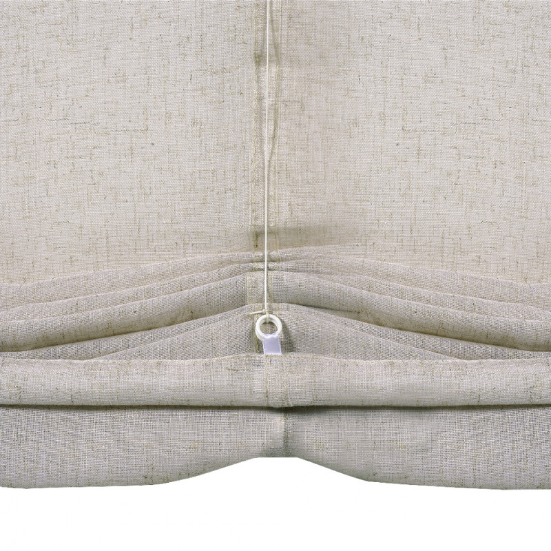 Le store pliable en tissu, est un store sans tringles avec un tissu translucide. Disponible dans une hauteur de 175cm (pour les fenêtres) et 250cm (pour les portes) et dans différents coloris. Tissu de type lin, lisse et léger. Composition : 100% polyester en blanc, 85% Polyester - 15% Lin en beige. C'est un store pacchetto de qualité qui apportera une touche de chaleur dans les cuisines, salons, salles à manger, chambres. De plus, vous pouvez facilement l'installer au mur ou au plafond. Le mécanisme du store pacchetto est actionné par une chaîne. Il comprend un système anti-blocage et une sécurité enfant. Entretien facile : le tissu blanc peut être lavé en machine à l'eau froide et repassé délicatement. Nettoyage à sec uniquement pour le beige.