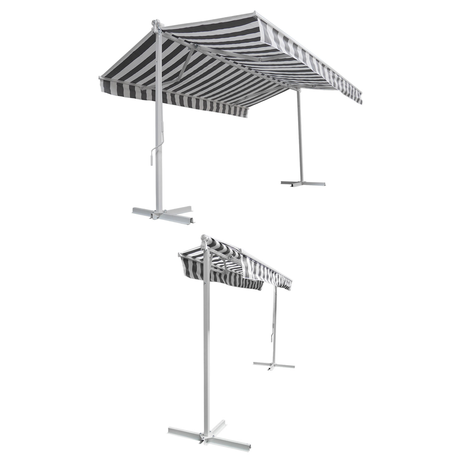 | Libellé | Store double pente FRENE sur pieds 3,95 x 3 m - Toile rayée blanche/grise et structure blanche |