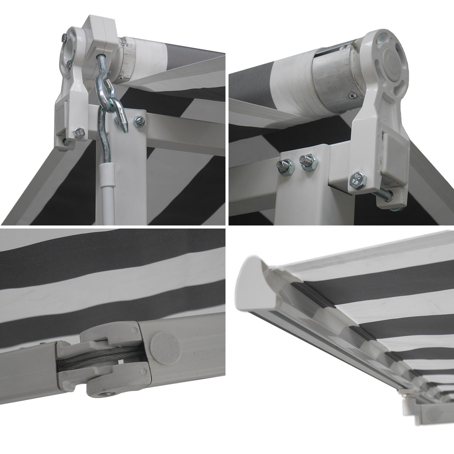 Store double pente FRENE sur pieds 3,95 x 3 m - Toile rayée blanche/grise et structure blanche