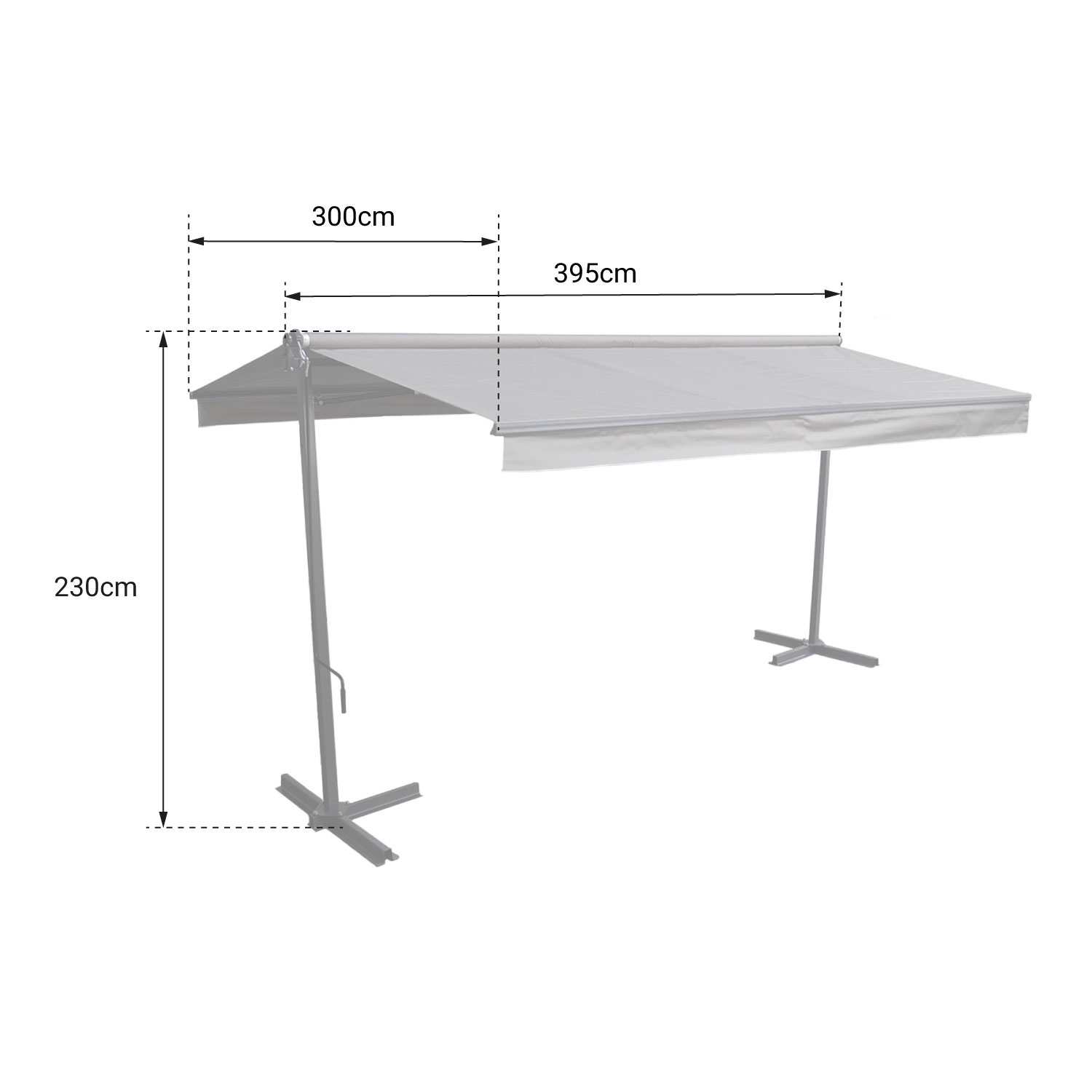 Le store extérieur FRENE est conçu pour ombrager une grande surface, avec ses dimensions de 3,95 x 3 m, sans qu'il soit nécessaire de le fixer à un mur. En effet, il a été monté sur des pieds en acier, solides et résistants, afin de vous laisser le choix de l'endroit où vous le placerez dans votre espace extérieur. Simple et élégant, il constitue une solution idéale pour un usage domestique durant la saison estivale. Équipement parfait pour ombrager une table de jardin, ce store banne double vous offre une protection solaire UV50+. Complétez votre store avec un lot de dalles de lestage pour un maintien au sol lors de son utilisation.