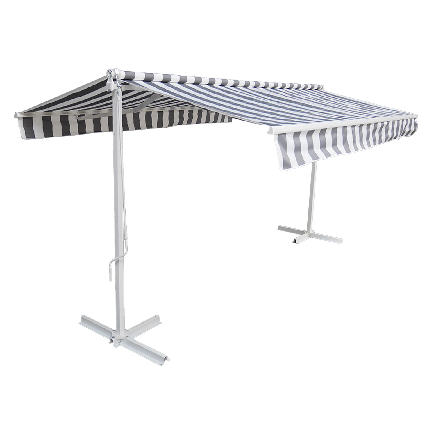 | Libellé | Store double pente FRENE sur pieds 3,95 x 3 m - Toile rayée blanche/grise et structure blanche |