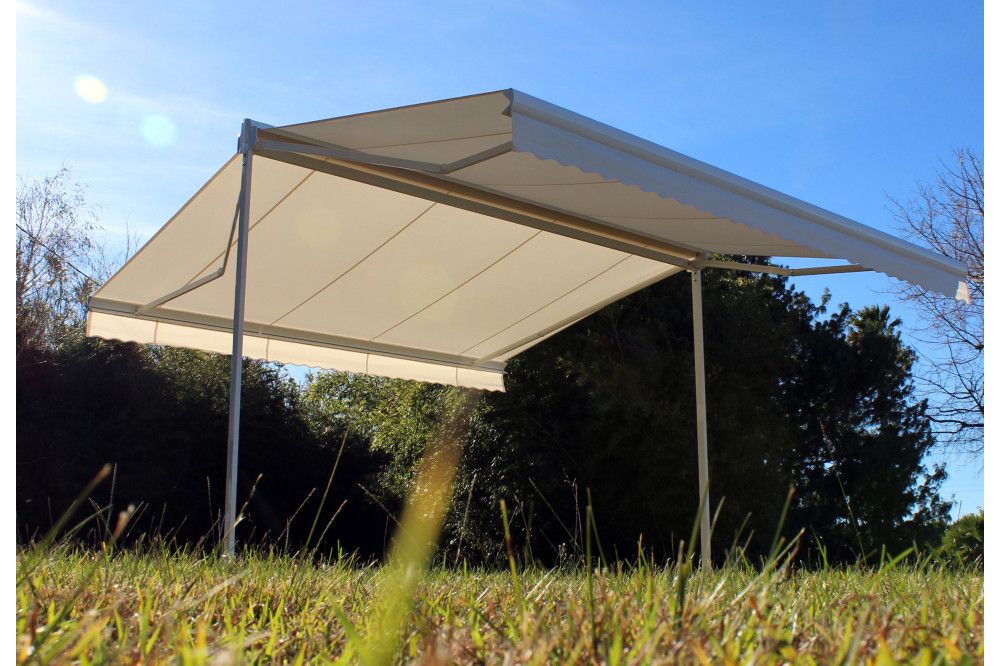 Le store double pente GARDEN. Avec ses 30 m² d'ombrage, il sera votre allié pour les journées ensoleillées ou vos longues soirées entre amis. Vous pourrez l'installer ou vous le souhaitez avec ses deux pieds il s'intègrera parfaitement au milieu de votre jardin.