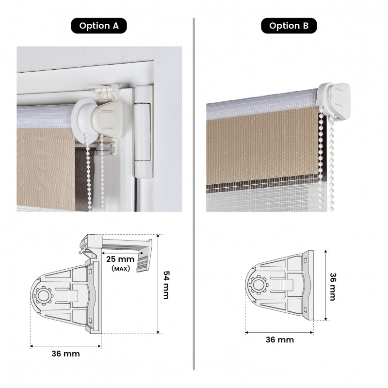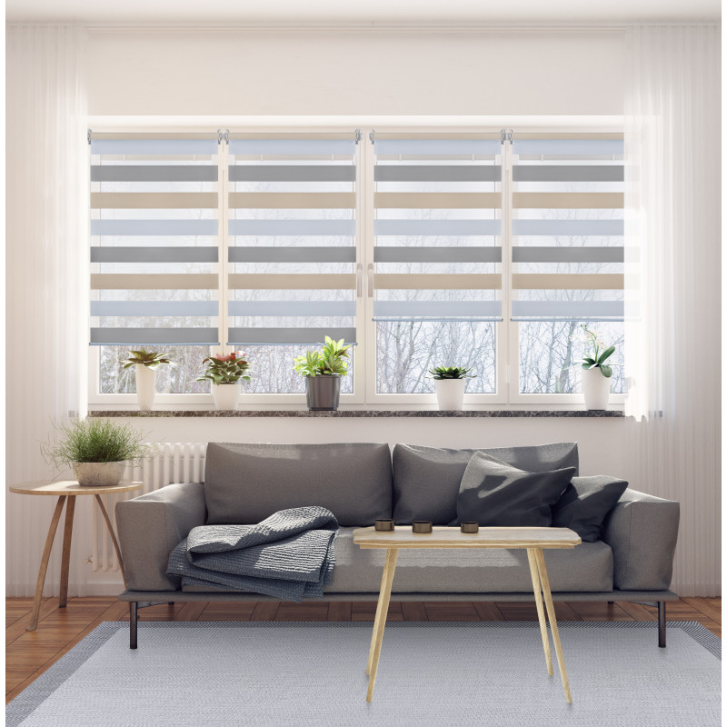 Store Enrouleur Jour Nuit sans perçage EasyFix Blanc-gris-beige 75 x 180 cm