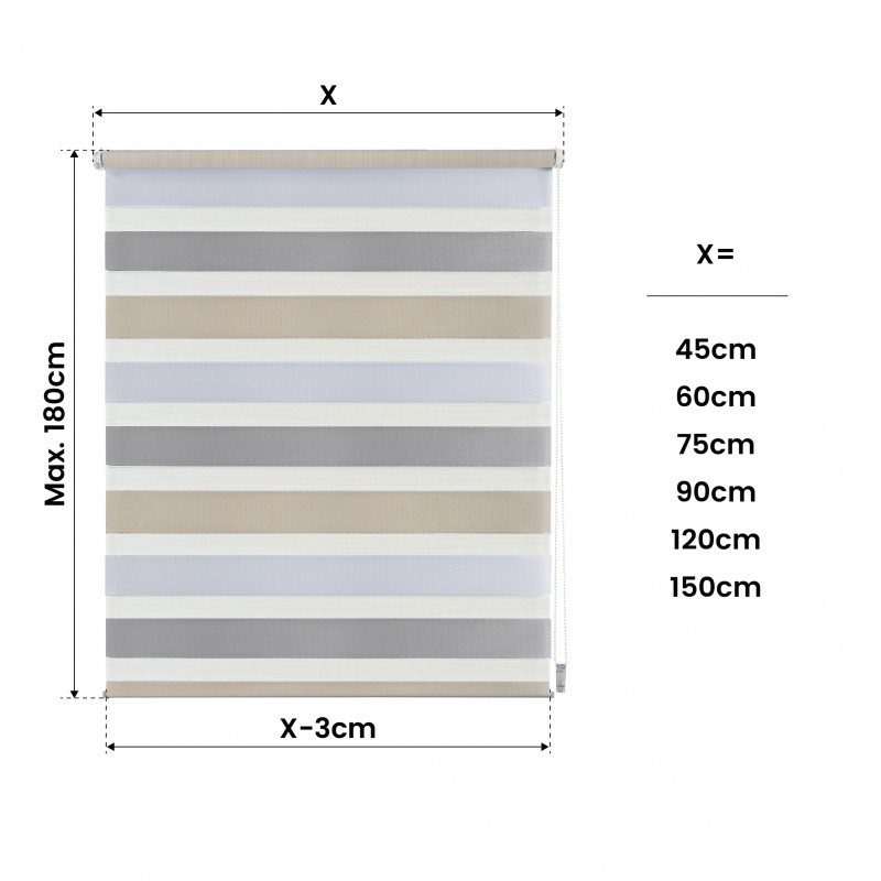 | Libellé | Store Enrouleur Jour Nuit sans perçage EasyFix Blanc-gris-beige 75 x 180 cm |