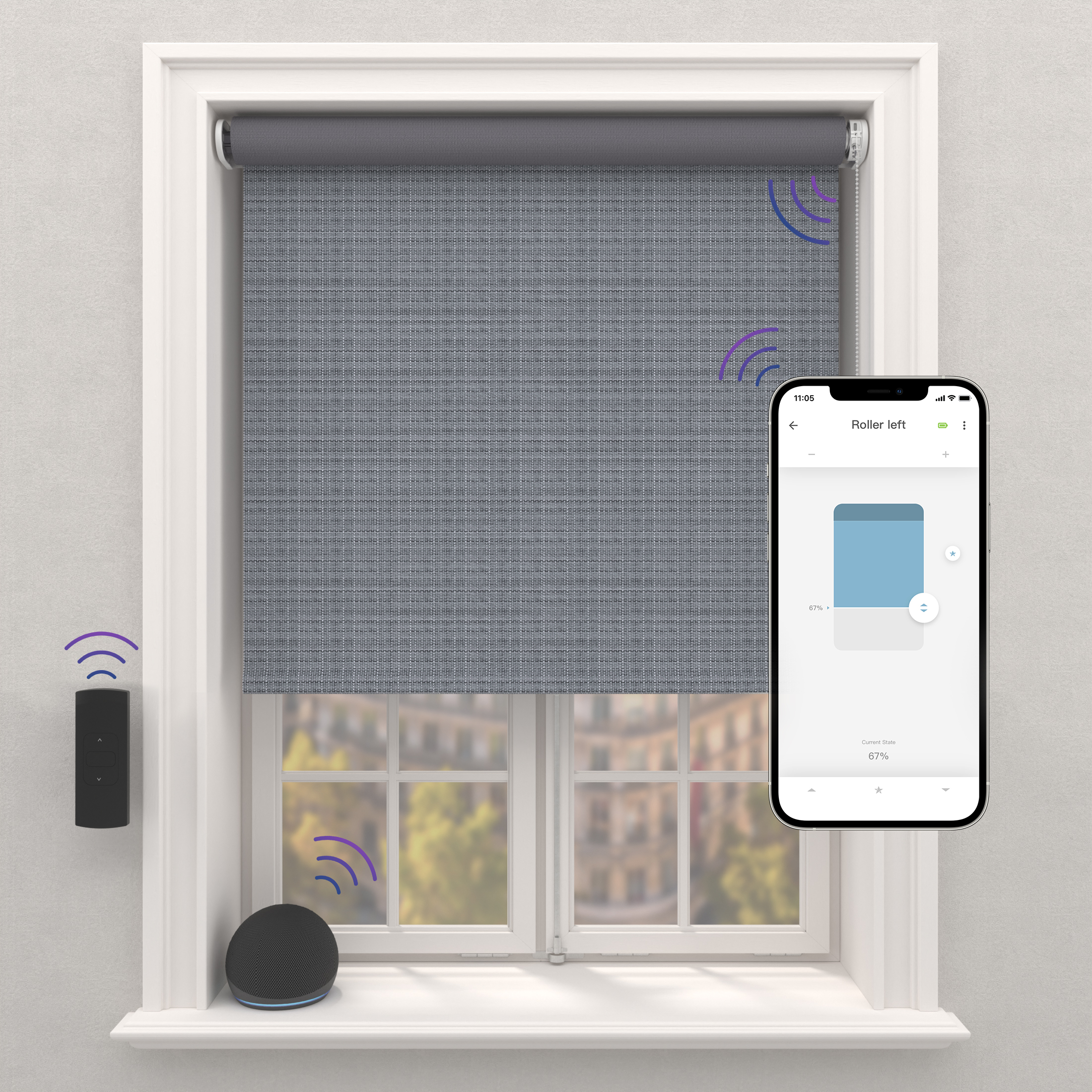 MotionBlinds est une technologie intelligente pour les stores d’intérieur. Les stores enrouleurs motorisés MotionBlinds peuvent être contrôlés avec votre smartphone, avec une télécommande (disponible séparément), ou avec une simple traction manuelle. Contrôlez les stores en Bluetooth avec l’application (portée de 10 mètres) ou mettez-les en pilote automatique en programmant des minuteries. Une courte traction sur la chaînette de commande active le moteur, après quoi le store monte ou descend automatiquement. Si vous tirez à nouveau sur la chaînette, le store s'arrête à la position souhaitée. L'opération de traction est facile et sûre. La chaînette ne comporte pas de boucle et ne représente donc aucun danger pour les enfants ou les animaux domestiques.