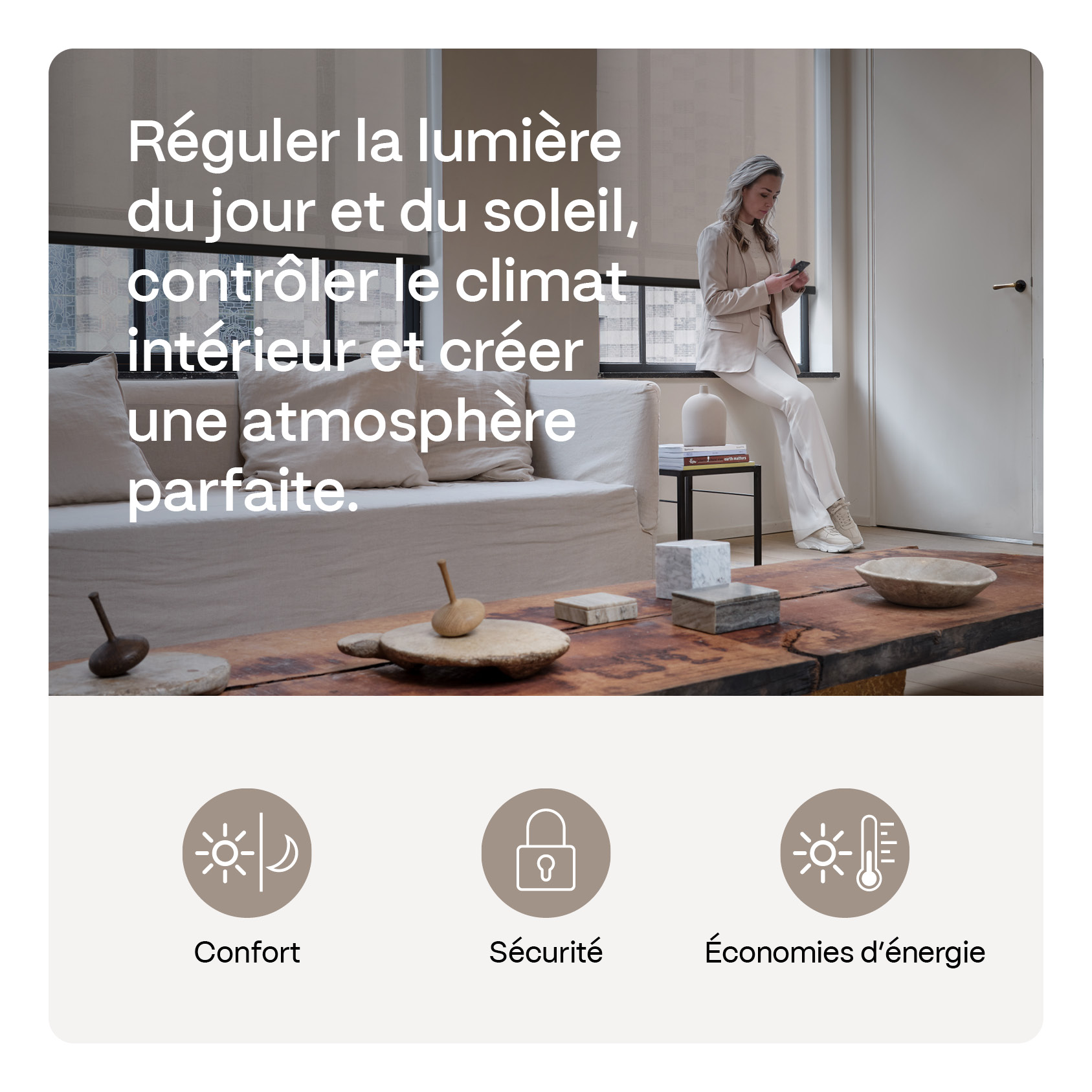Les stores motorisés rendent votre vie plus confortable. Le matin, vous vous réveillez avec la lumière naturelle. Avec une commande vocale, vous créez l'atmosphère parfaite. Votre maison est plus sûre lorsque vous réglez une minuterie qui ouvre ou ferme vos stores à des heures prédéfinies, même lorsque vous êtes en vacances. Vous évitez ainsi les effractions et ajoutez de la sécurité à votre vie.