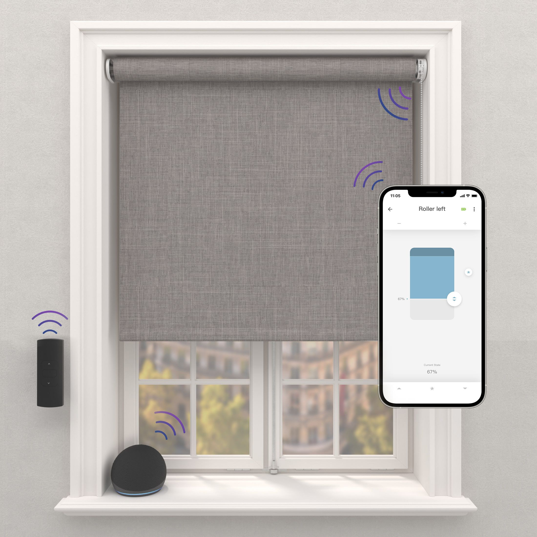 Ce store enrouleur est équipé d'un moteur Motionblinds. Le moteur vous permet d'actionner le store avec la télécommande (vendue séparément) ou via l'application Motionblinds (pont Wi-Fi requis, non inclus). Le store motorisé se présente ainsi sans chaînette et est donc sans danger pour les enfants. Vous pouvez facilement régler des positions favorites à l'aide du cordon de traction, ce qui facilite également les opérations quotidiennes d'ouverture et de fermeture. Le moteur dispose d'une batterie rechargeable par câble micro-USB qui nécessite moins de 2 charges par an. Vous pouvez utiliser une seule télécommande pour plusieurs stores. L'ajout d'un pont Wi-Fi vous permettra d'utiliser toutes les fonctions domotiques, dont la commande vocale et les minuteries, ainsi que d'autres application domotiques pour l'éclairage ou le thermostat. Le store peut être monté par perçage sur le mur ou le plafond.