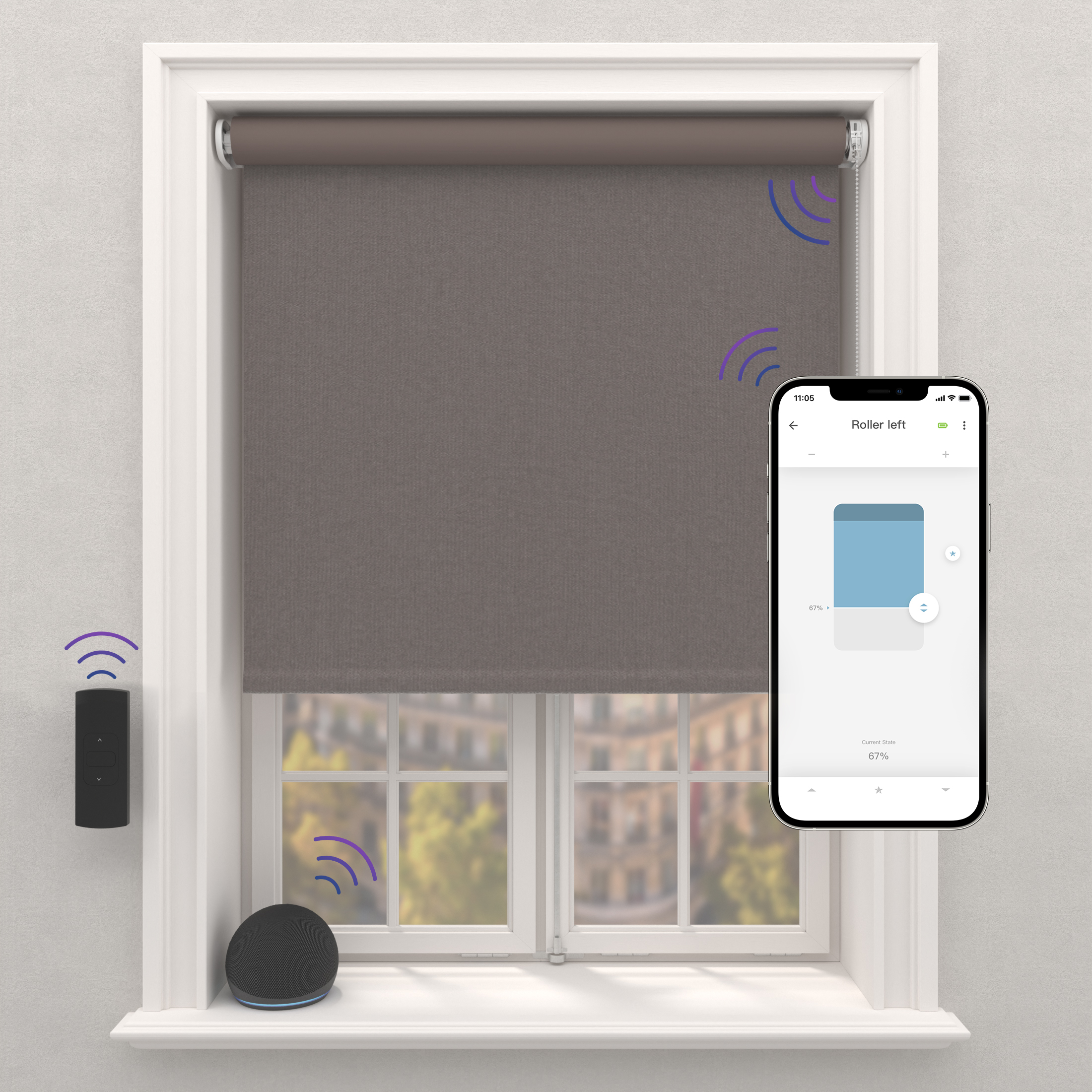 Ce store enrouleur est équipé d'un moteur Motionblinds. Le moteur vous permet d'actionner le store avec la télécommande (vendue séparément) ou via l'application Motionblinds (pont Wi-Fi requis, non inclus). Le store motorisé se présente ainsi sans chaînette et est donc sans danger pour les enfants. Vous pouvez facilement régler des positions favorites à l'aide du cordon de traction, ce qui facilite également les opérations quotidiennes d'ouverture et de fermeture. Le moteur dispose d'une batterie rechargeable par câble micro-USB qui nécessite moins de 2 charges par an. Vous pouvez utiliser une seule télécommande pour plusieurs stores. L'ajout d'un pont Wi-Fi vous permettra d'utiliser toutes les fonctions domotiques, dont la commande vocale et les minuteries, ainsi que d'autres application domotiques pour l'éclairage ou le thermostat. Le store peut être monté par perçage sur le mur ou le plafond.