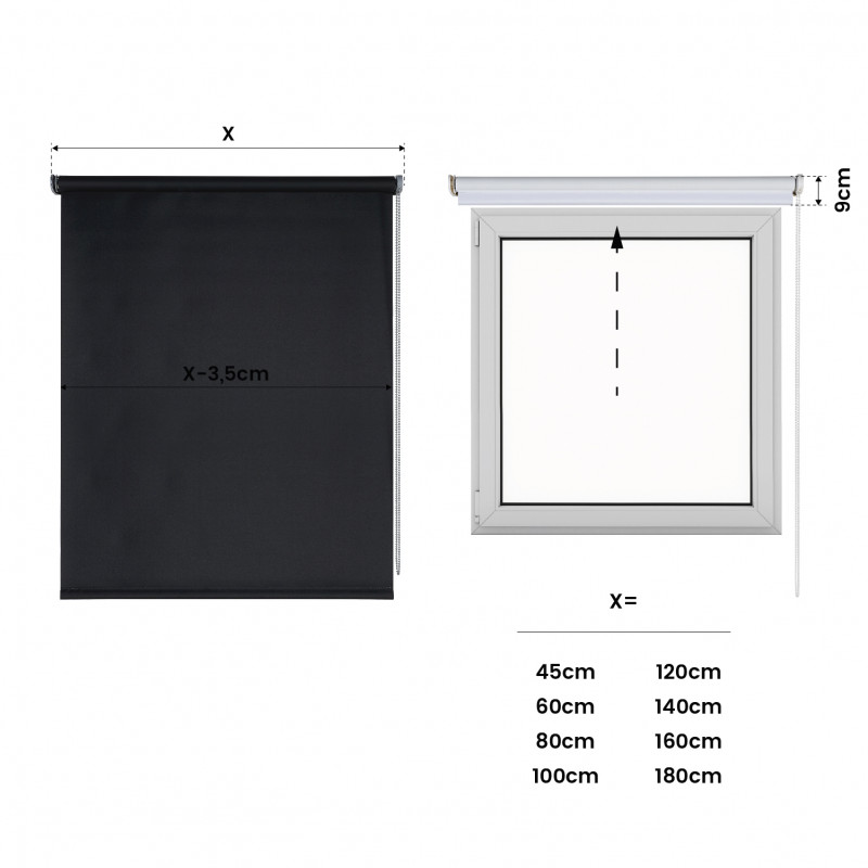 CONFIDENTIALITÉ TOTALE : Ce sont des stores avec un tissu 100% opaque. Idéal pour créer des environnements avec une intimité totale, sans vue sur l'extérieur. Ils sont disponibles en 180 cm (fenêtres) et 250 cm (portes) et vous pouvez choisir entre 45 cm et 200 cm de large ! QUALITÉ ET POLYVALENCE : Stores occultants de qualité, idéaux pour créer des environnements intimes, avec une grande intimité dans : les chambres, les salles de bains, les bureaux, les salons, etc. Son tissu a un aspect textile, avec la face et le dos de la même couleur. Composition : 100% Polyester. FONCTIONNEMENT CONFORTABLE : Le fonctionnement est très confortable, vous pouvez régler la hauteur de vos stores au moyen d'une chaîne en plastique avec une finition mate. Comprend un système de sécurité pour les enfants. INSTALLATION FACILE : Vous pouvez installer vos stores opaques aussi bien au plafond qu'au mur. Les stores de la gamme Moon comprennent un nouveau mécanisme à ressort qui facilite le placement du store sur les supports. FINITIONS DÉCORATIVES : Les stores opaques de la collection Moon comprennent les garnitures et les supports en plastique dans la même pièce, ce qui rend l'installation beaucoup plus pratique. La couleur des garnitures est toujours assortie à la chaîne et le contrepoids est caché, ce qui améliore l'esthétique du store. ENTRETIEN FACILE : Vous pouvez laver le tissu avec un chiffon légèrement humide.