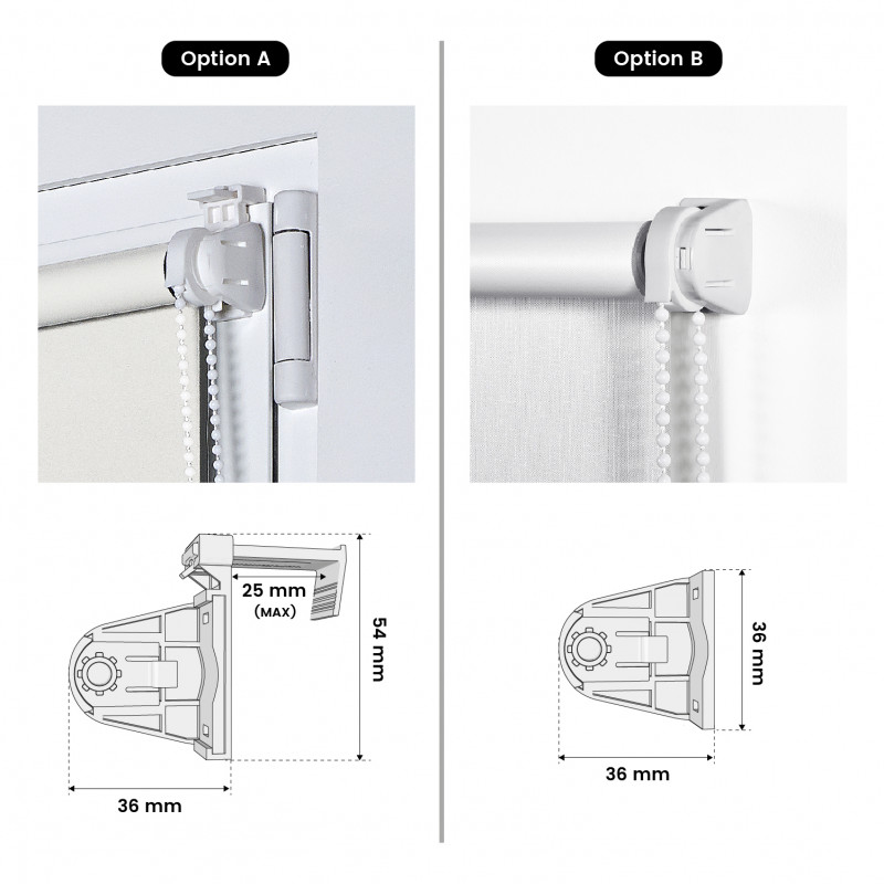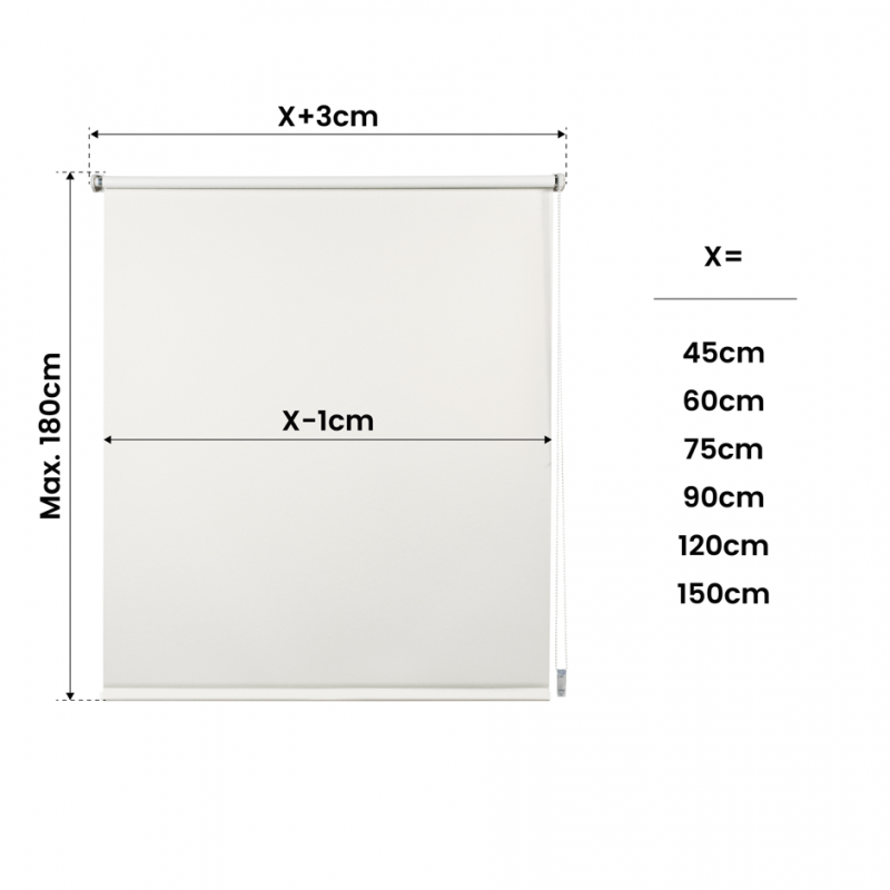 Store à rouleau en tissu 100% opaque, intimité totale, idéal pour les chambres à coucher, les salles de bains, les salles à manger... et pour toutes les pièces où nous voulons obtenir de l'intimité. Store opaque facile à installer : mur, plafond et cadre de la fenêtre : pas de perçage, pas de vis et pas de trous ! Comprend un système de verrouillage inférieur pour que le store soit fixé au cadre de la fenêtre, idéal pour les fenêtres à battants. Comprend des supports en plastique, des accessoires d'installation et une chaîne avec système de sécurité enfant. Facile à nettoyer avec un chiffon légèrement humide. Le modèle THERMO, disponible dans les couleurs Noir et Gris, possède un support argenté réfléchissant qui améliore les propriétés thermiques du store : vous obtiendrez une meilleure isolation et des économies d'énergie.
