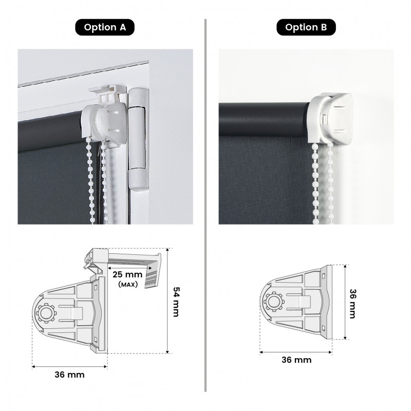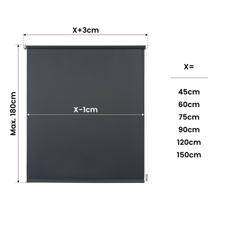 Store à rouleau en tissu 100% opaque, intimité totale, idéal pour les chambres à coucher, les salles de bains, les salles à manger... et pour toutes les pièces où nous voulons obtenir de l'intimité. Store opaque facile à installer : mur, plafond et cadre de la fenêtre : pas de perçage, pas de vis et pas de trous ! Comprend un système de verrouillage inférieur pour que le store soit fixé au cadre de la fenêtre, idéal pour les fenêtres à battants. Comprend des supports en plastique, des accessoires d'installation et une chaîne avec système de sécurité enfant. Facile à nettoyer avec un chiffon légèrement humide. Le modèle THERMO, disponible dans les couleurs Noir et Gris, possède un support argenté réfléchissant qui améliore les propriétés thermiques du store : vous obtiendrez une meilleure isolation et des économies d'énergie.