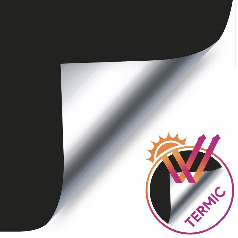 Store à rouleau en tissu 100% opaque, intimité totale, idéal pour les chambres à coucher, les salles de bains, les salles à manger... et pour toutes les pièces où nous voulons obtenir de l'intimité. Store opaque facile à installer : mur, plafond et cadre de la fenêtre : pas de perçage, pas de vis et pas de trous ! Comprend un système de verrouillage inférieur pour que le store soit fixé au cadre de la fenêtre, idéal pour les fenêtres à battants. Comprend des supports en plastique, des accessoires d'installation et une chaîne avec système de sécurité enfant. Facile à nettoyer avec un chiffon légèrement humide. Le modèle THERMO, disponible dans les couleurs Noir et Gris, possède un support argenté réfléchissant qui améliore les propriétés thermiques du store : vous obtiendrez une meilleure isolation et des économies d'énergie.