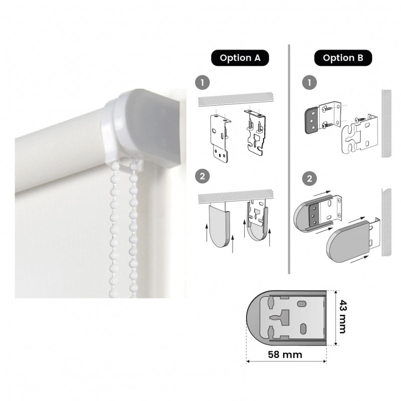 Le store enrouleur Screen nous offre élégance, simplicité et une esthétique moderne. Parfait pour n'importe quelle pièce de la maison et aussi sur le lieu de travail, grâce à sa fonctionnalité infinie. Filtre l'entrée de la lumière sans perdre la vue extérieure mais vous aurez une grande intimité pendant la journée, la nuit l'intimité est modérée. Idéal pour les salles de réunion ou les environnements dotés de grandes fenêtres, compte tenu de sa hauteur (180 ou 250 cm selon la taille). De plus, il protège des rayons UV, vous pouvez économiser de l'énergie grâce à son isolation. Le store enrouleur est fabriqué avec des matériaux de haute qualité, son tissu réalisé avec la plus haute technologie est composé de tissu 65% PVC - 35% polyester et le support métallique avec finitions plastique et chaîne. Il n'est pas inflammable, cela nous donne une sécurité supplémentaire et ne vous inquiétez pas lors du nettoyage, avec un chiffon humide vous l'aurez nettoyé en un instant puisque ce tissu n'attire pas la poussière.
