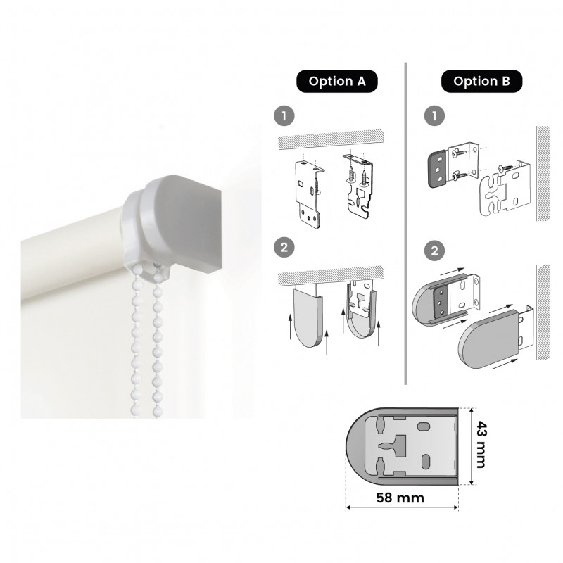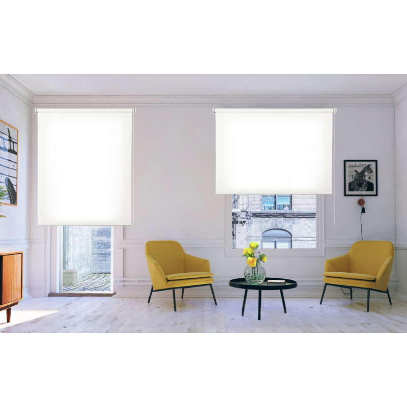 Store à rouleau lisse et translucide avec un tissu 100% polyester. Disponible en 180cm (fenêtres) et 250cm (portes). Store translucide idéal pour tout environnement : cuisine, salle à manger, salon, chambre à coucher, salle de bain... il est très polyvalent ! Il est actionné par un mécanisme à chaîne et comprend un système de sécurité pour les enfants. C'est un store à enroulement qui peut être facilement installé au plafond et au mur. Finitions de qualité : garnitures des supports métalliques et contrepoids dissimulé. Facile à nettoyer avec un chiffon légèrement humide.