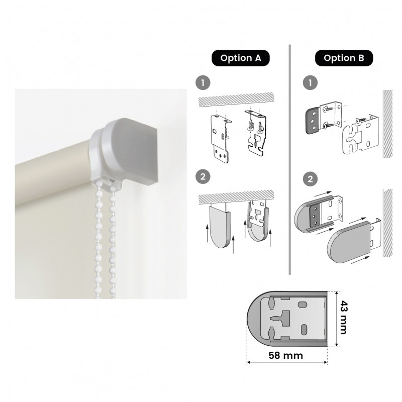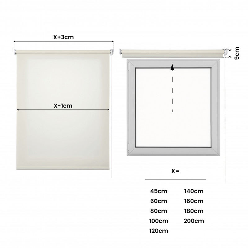 Store à rouleau lisse et translucide avec un tissu 100% polyester. Disponible en 180cm (fenêtres) et 250cm (portes). Store translucide idéal pour tout environnement : cuisine, salle à manger, salon, chambre à coucher, salle de bain... il est très polyvalent ! Il est actionné par un mécanisme à chaîne et comprend un système de sécurité pour les enfants. C'est un store à enroulement qui peut être facilement installé au plafond et au mur. Finitions de qualité : garnitures des supports métalliques et contrepoids dissimulé. Facile à nettoyer avec un chiffon légèrement humide.