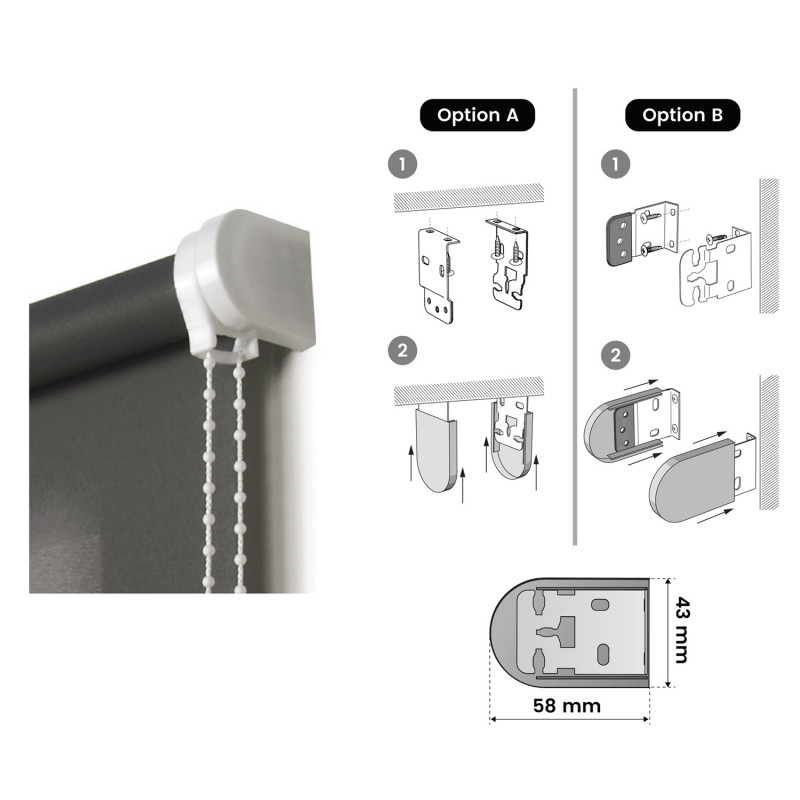 Store à rouleau lisse et translucide avec un tissu 100% polyester. Disponible en 180cm (fenêtres) et 250cm (portes). Store translucide idéal pour tout environnement : cuisine, salle à manger, salon, chambre à coucher, salle de bain... il est très polyvalent ! Il est actionné par un mécanisme à chaîne et comprend un système de sécurité pour les enfants. C'est un store à enroulement qui peut être facilement installé au plafond et au mur. Finitions de qualité : garnitures des supports métalliques et contrepoids dissimulé. Facile à nettoyer avec un chiffon légèrement humide.