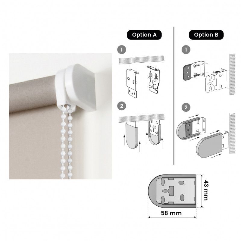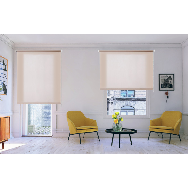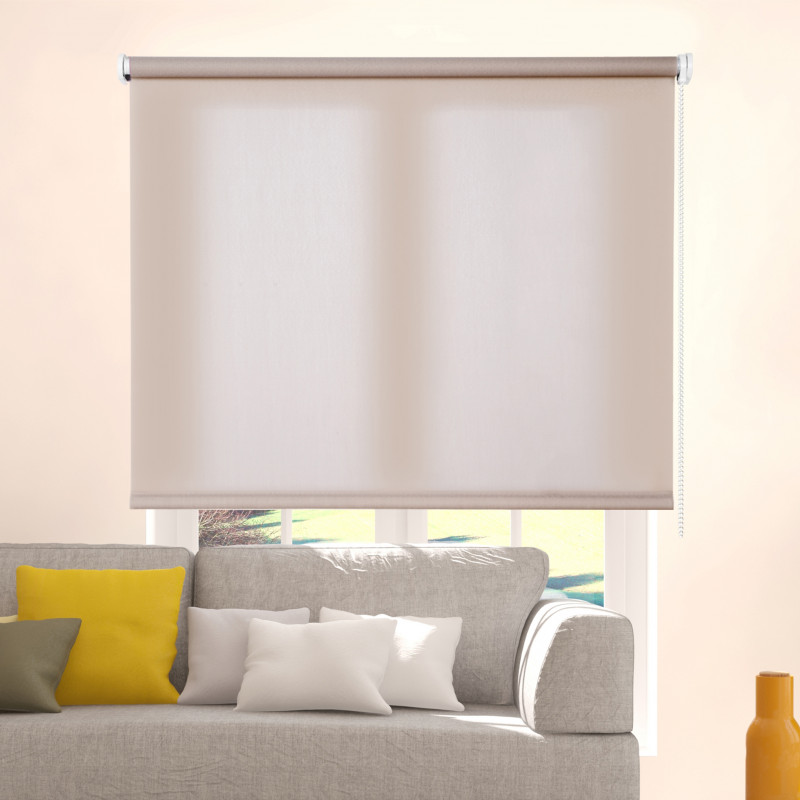 Store à rouleau lisse et translucide avec un tissu 100% polyester. Disponible en 180cm (fenêtres) et 250cm (portes). Store translucide idéal pour tout environnement : cuisine, salle à manger, salon, chambre à coucher, salle de bain... il est très polyvalent ! Il est actionné par un mécanisme à chaîne et comprend un système de sécurité pour les enfants. C'est un store à enroulement qui peut être facilement installé au plafond et au mur. Finitions de qualité : garnitures des supports métalliques et contrepoids dissimulé. Facile à nettoyer avec un chiffon légèrement humide.