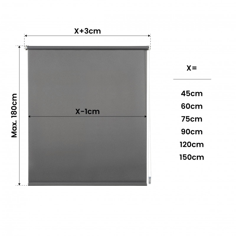 Store translucide en tissu lisse, 100% polyester. Idéal pour tous types de pièces : cuisine, salle à manger, salon, chambres à coucher...Store translucide avec système Easyfix - Installation facile : au mur, au plafond et également au cadre de la fenêtre : pas de perçage, pas de vis et pas de trous ! Comprend un système de verrouillage inférieur pour fixer le store au cadre de la fenêtre, idéal pour les fenêtres à battants. Comprend des supports en plastique, des accessoires d'installation et une chaîne avec système de sécurité enfant. Facile à nettoyer avec un chiffon légèrement humide.