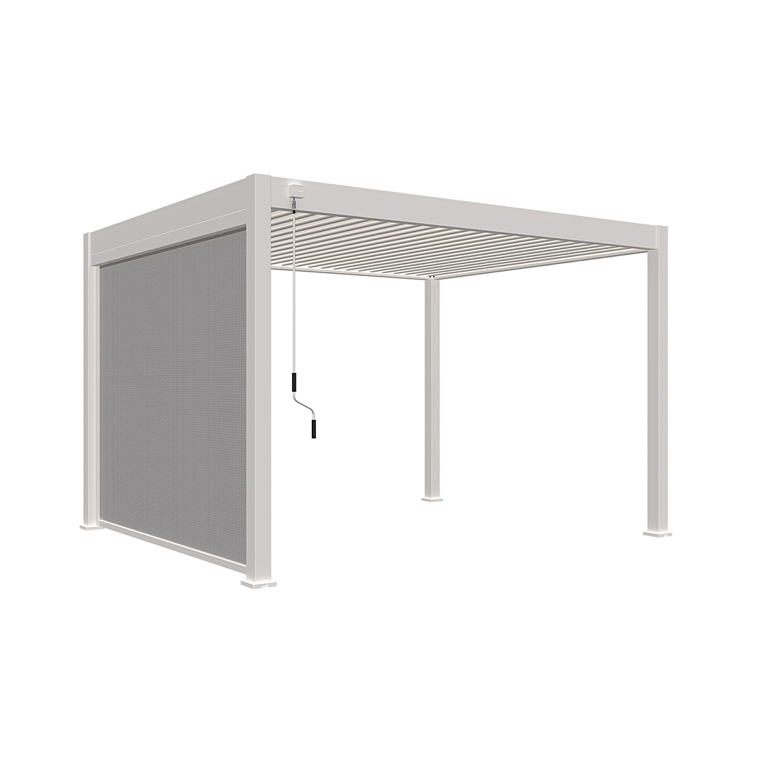 Le store latéral motorisé 3M de la collection VS est optimisé pour aménager votre pergola de la collection VS, pour un gain de confort. Il peut être installé sur tous les côtés des modèles autoportants ainsi que sur les côtés des modèles adossés (ou sur la face avant des modèles adossés compatibles - veuillez vous référer à la liste des compatibilités). Ce store motorisé est idéal pour profiter pleinement de votre acquisition. Il offre une protection contre le soleil et le vent léger tout en réduisant significativement le vis-à-vis. Sa toile en textilène alvéolé est un textile innovant qui permet une bonne aération, résiste aux UV et sèche rapidement. Le store se déroule facilement grâce à une télécommande, vous permettant de régler le store à la hauteur de votre choix. Le cadre en aluminium s’intègre parfaitement à la pergola bioclimatique Ombrea, conservant ainsi son aspect contemporain et esthétique. Il est possible d’installer ce store sur tous les côtés de votre pergola adossée et autoportée de toutes nos collections. (Sur nos anciens modèles de pergolas bioclimatiques adossées, il n’est possible d’installer un store que sur la face avant - voir tableau de compatibilités). En cas de fortes pluies, de forts vents ou de neige, il est fortement conseillé de replier le store. Dimensions (LxPxH) : 279 x 10 x 233,5 cm Poids : 25 kg Dimensions enrouleur/coffre (LxPxH) : 279 x 10 x10 cm Matériau cadre : aluminium Coloris cadre : proche RAL 9016 Matériau du textilène : 30% polyester, 70% PVC Coloris du textilène : gris clair Grammage : 525g/m2 Visserie et quincaillerie : acier inoxydable, acier galvanisé