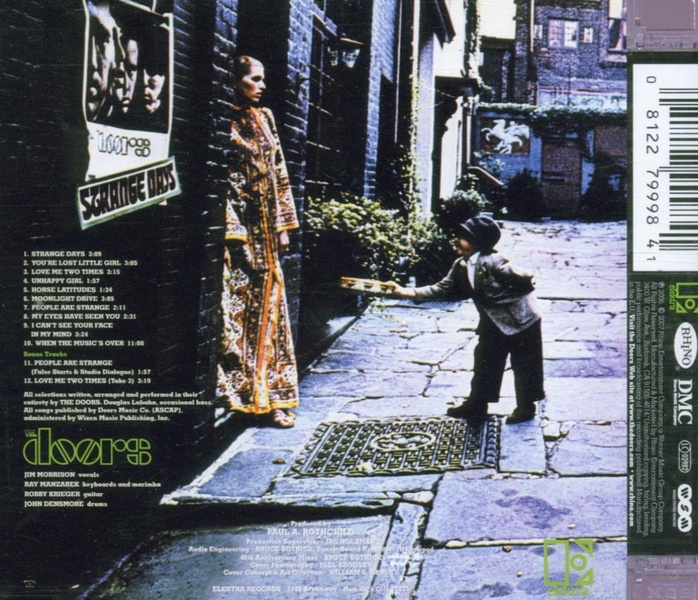 | Liste des pistes | 1.01 . strange days - Botnick, Bruce, The Doors1.02 . you're lost little girl - Botnick, Bruce, The Doors1.03 . love me two times - Botnick, Bruce, The Doors1.04 . unhappy girl - Botnick, Bruce, The Doors1.05 . horse lattitudes - Botnick, Bruce, The Doors1.06 . moonlight drive - Botnick, Bruce, The Doors1.07 . people are strange - Botnick, Bruce, The Doors1.08 . my eyes have seen you - Botnick, Bruce, The Doors1.09 . i can't see your face in my mind - Botnick, Bruce, The Doors1.10 . when the music's over - Botnick, Bruce, The Doors1.11 . people are strange (false starts & studio dialogue) - Botnick, Bruce, The Doors1.12 . love me two times (take 3) - Botnick, Bruce, The Doors |