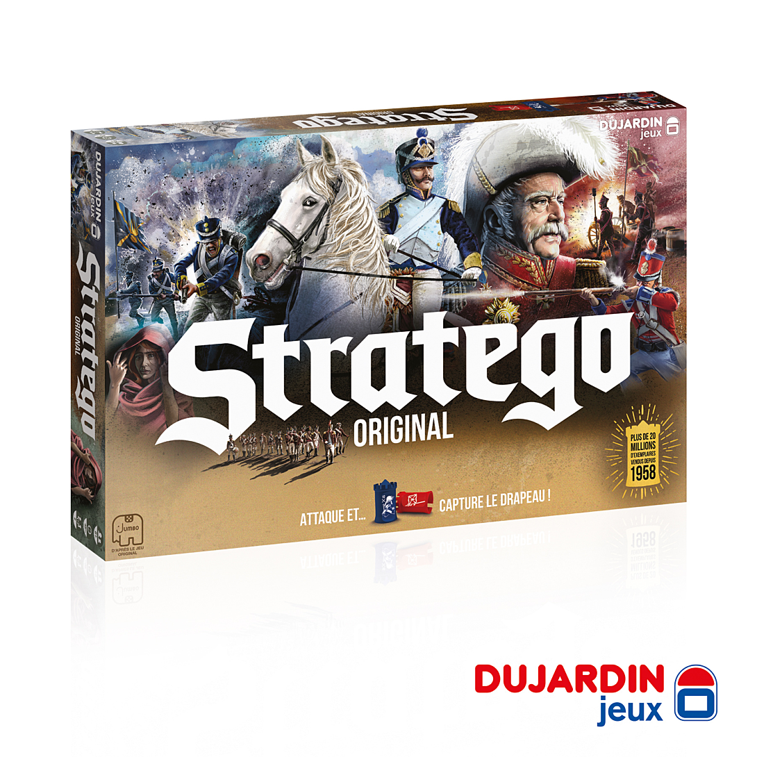Un des plus grands jeu de strategie dont le but consiste à s'emparer du drapeau de son adversaire à l'aide d'une armée de 40 personnages de grades différents et d'un infiltré. 3 modes de jeu: duel, Stratego Original et le nouveau mode "infiltré".