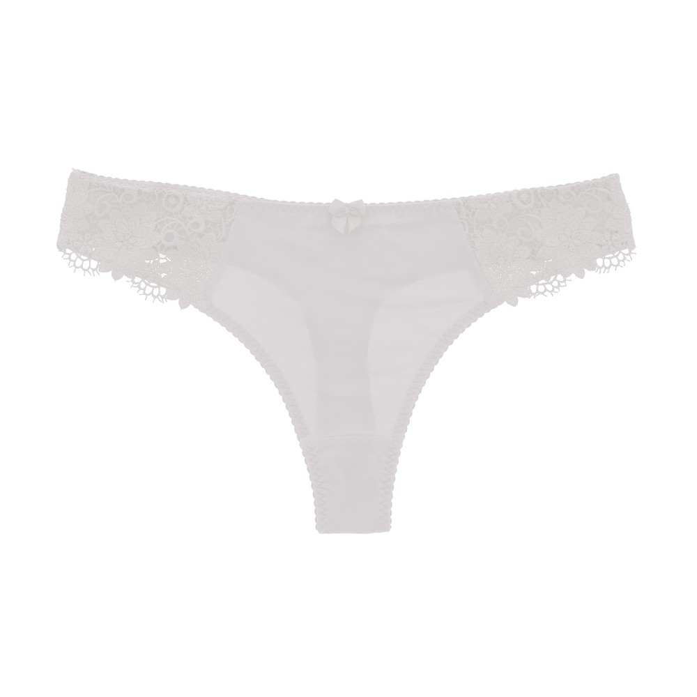 String en guipure blanc. Compostion : corps 84% polyamide 16% élasthanne, dentelle 100% polyester, doublure 100% polyamide, gousset 100% coton, . Existe du 34/36 au 46/48.