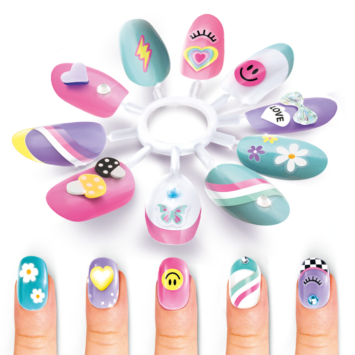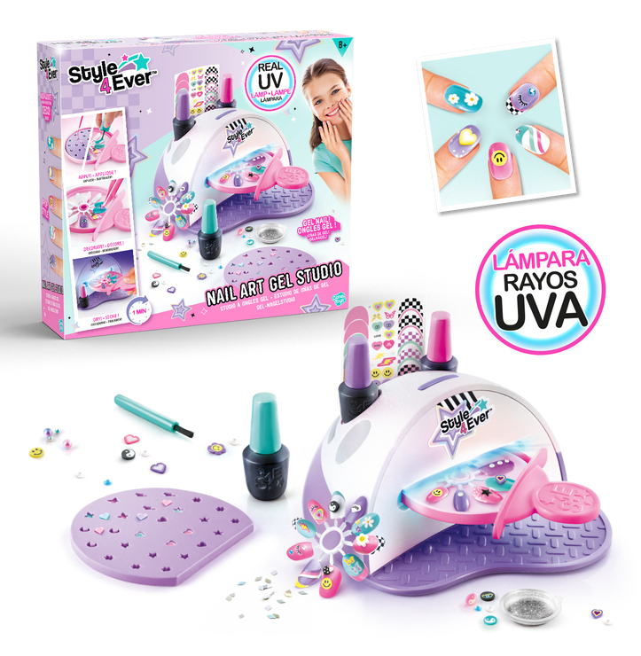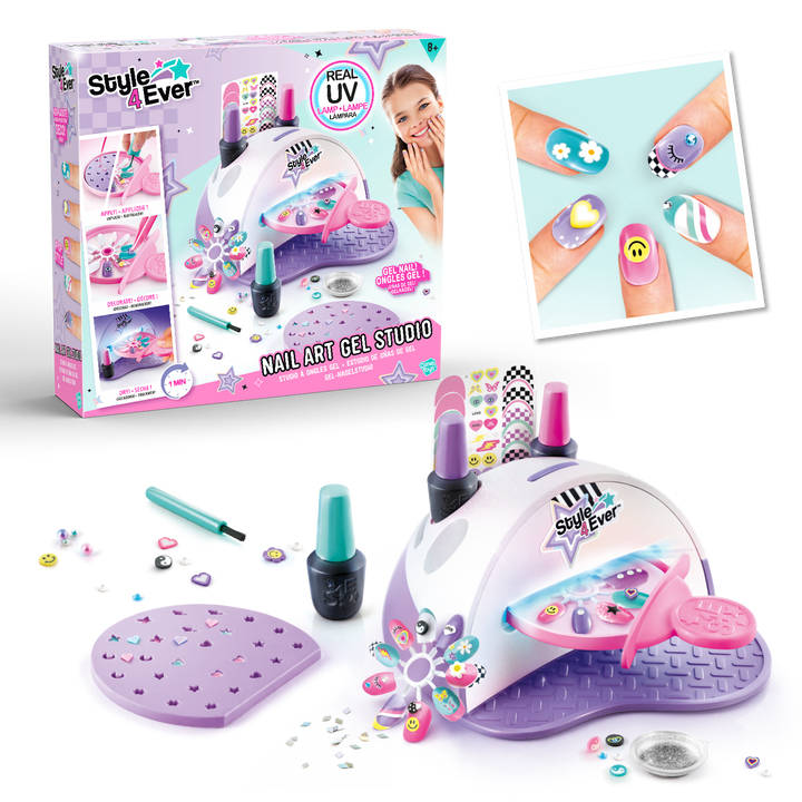 "Adopte un style Y2K super tendance avec le Studio UV Gel et réalise une manucure de pro ! Crée tes propres charms avec le moule, décore tes ongles et place-les dans le studio sous la lumière UV ! Attends quelques secondes et tes créations sont prêtes !"