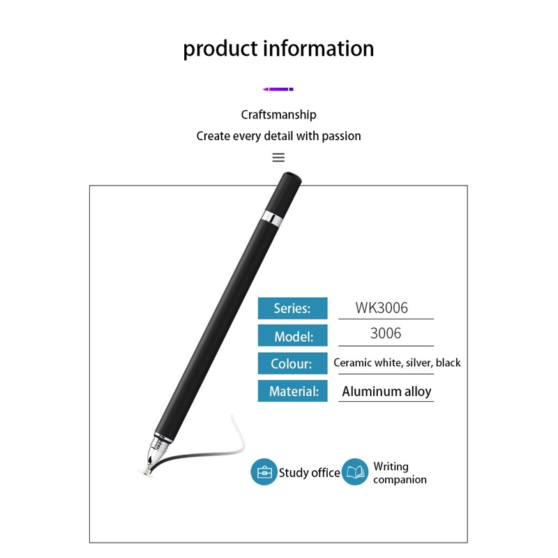 Stylet pour une écriture fluide et continue sans endommager l'écran. Il est léger et confortable à tenir.Avec bouchon d'aspiration. Peut également être appliqué aux écrans résistifs.
