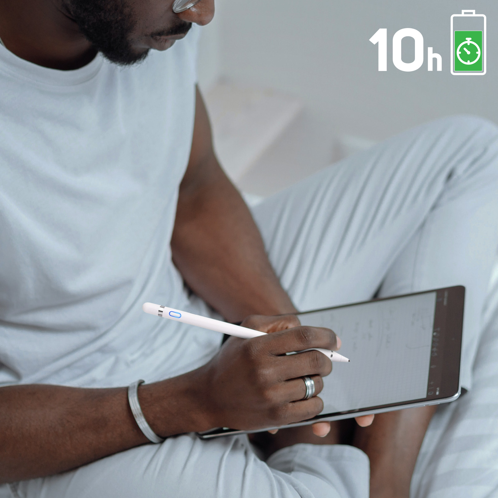 Stylet en aluminium. Vous permet de dessiner ou d'écrire avec précision, sans rayer votre écran. Design moderne et élégant. Compatible avec tous les appareils à écran tactile. Autonomie de 8 à 10 heures. Câble micro-USB inclus.