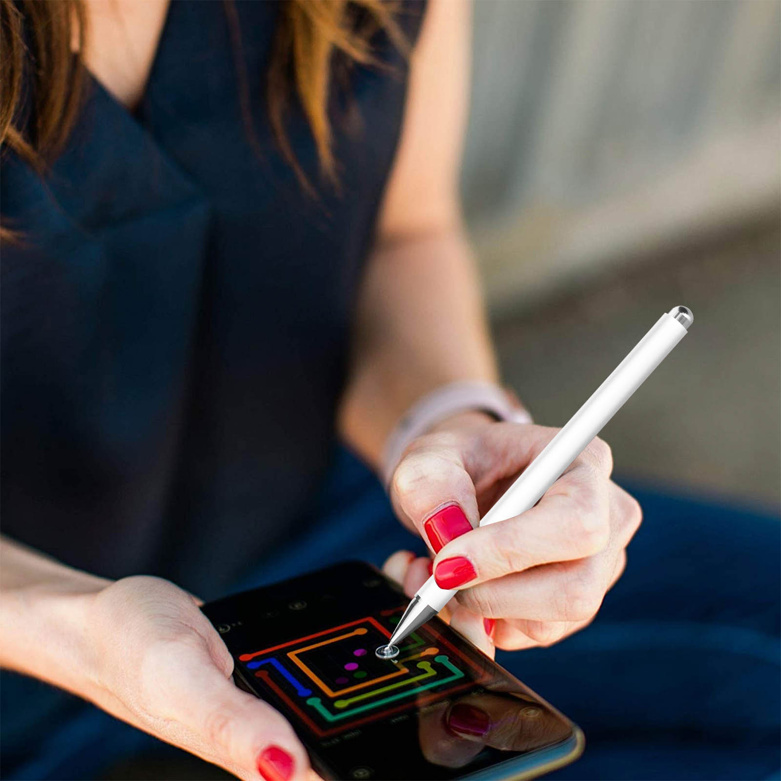 Stylet Universel Smartphone et Tablette Pointe ultra-fine Haute précision blanc