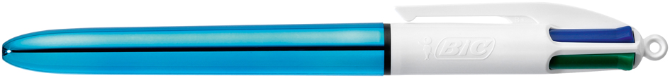 Libellé Stylo à bille rétractable BIC 4 couleurs Shine, 0,32 mm, argent