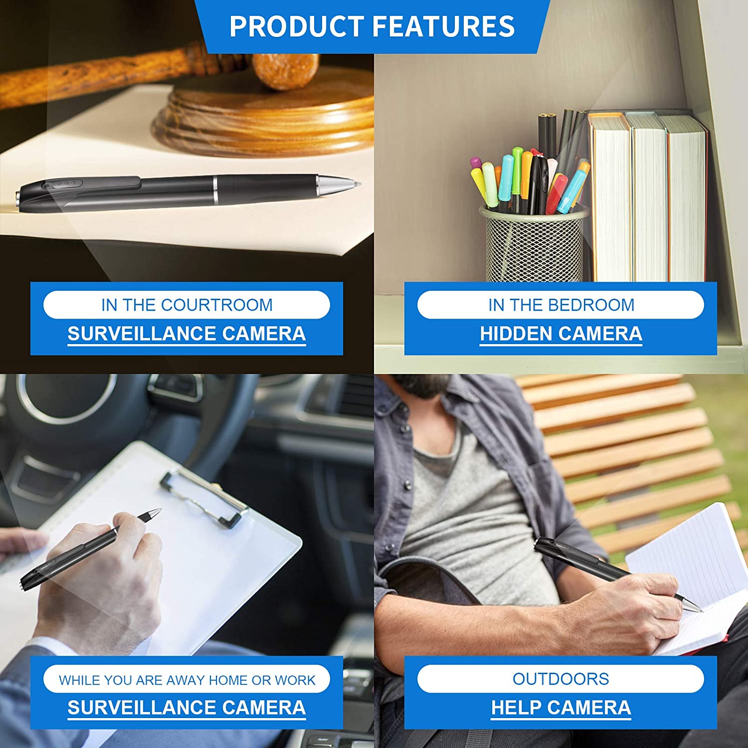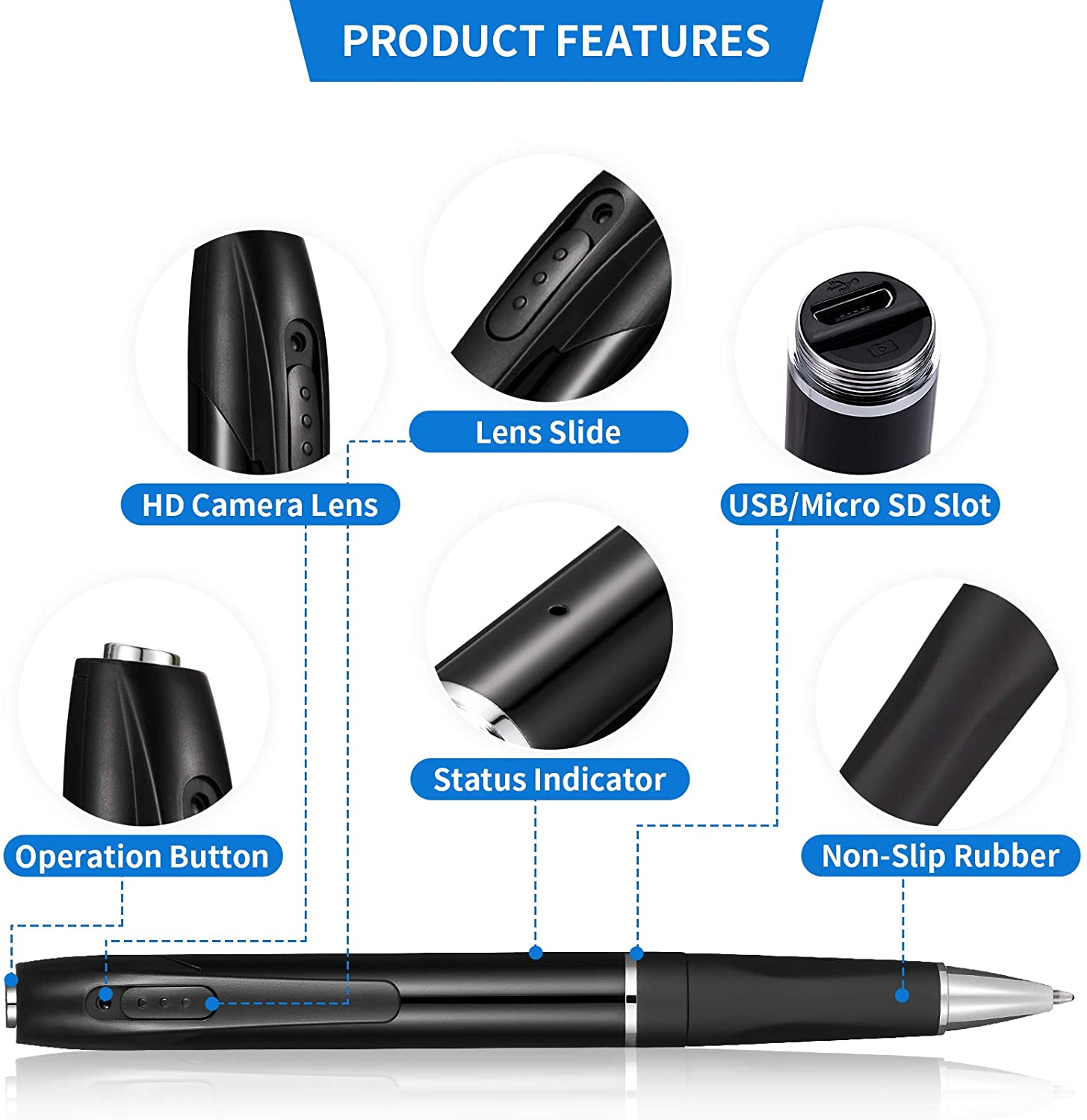 Stylo Espion Full HD 1080p Photo Vidéo Batterie Longue Durée 128G TF Card YONIS