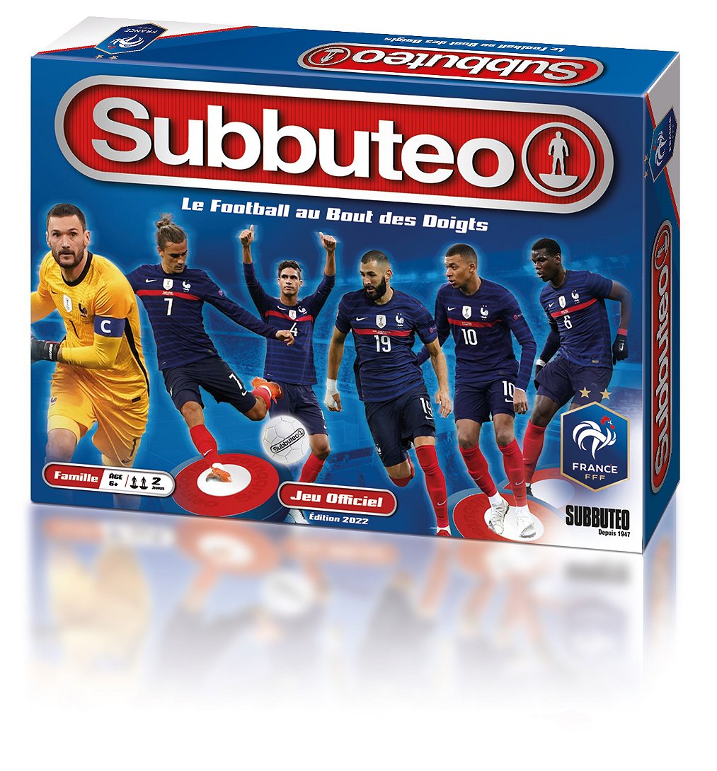 Le jeu culte de football de table est de retour ! Une version « FFF » maintenant disponible avec des figurines souples d’une belle finition et qui sont incassables. Avec SUBBUTEO, vivez la passion du football au bout des doigts !