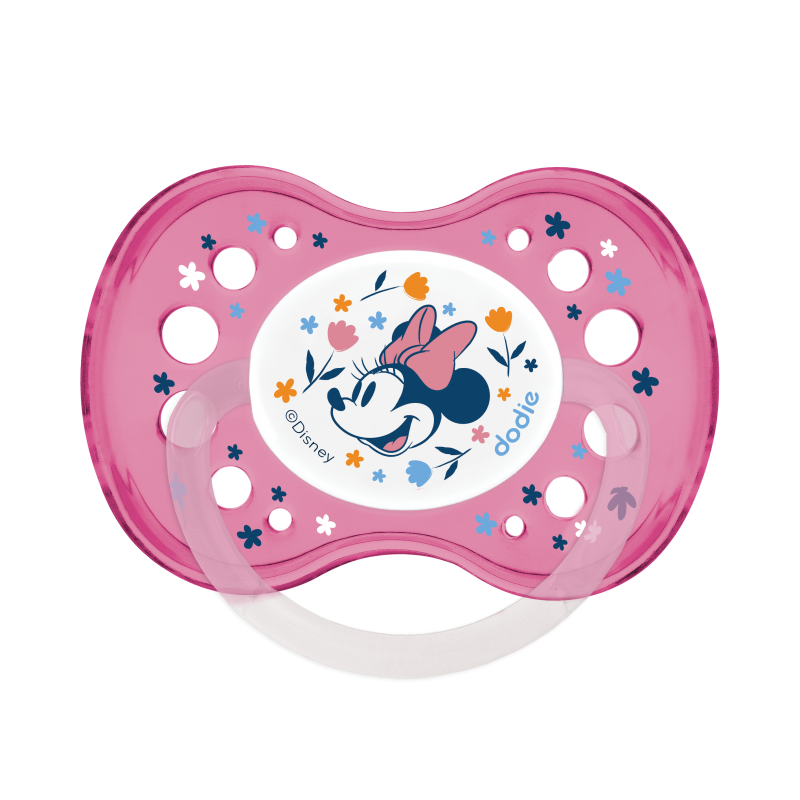 Disney en exclusivité avec dodie ! Sucettes à l'effigie de Minnie Conçue avec des experts Téterelle nervurée en silicone de forme anatomique (réversible) Bonne position garantie dans la bouche de bébé Spécialement conçue pour les bébés de plus de 18 mois pour résister aux premières dents Bouclier aéré qui réduit les irritations Lot de 2 sucettes