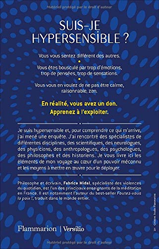 Vous vous sentez différent des autres.Vous êtes bousculé par trop d'émotions, trop de pensées, trop de sensations.Vous vous en voulez de ne pas être calme, raisonnable, zen.En réalité, vous avez un don. Apprenez à l'exploiter.Je suis hypersensible et, pour comprendre ce qui m'arrive, j'ai mené une enquête. J'ai rencontré des spécialistes de différentes disciplines, des scientifiques, des neurologues, des physiciens, des anthropologues, des psychologues, des philosophes et des historiens. Je vous livre ici leséléments de mon voyage au coeur d'un pouvoir méconnu et les moyens à mettre en oeuvre pour le déployer.