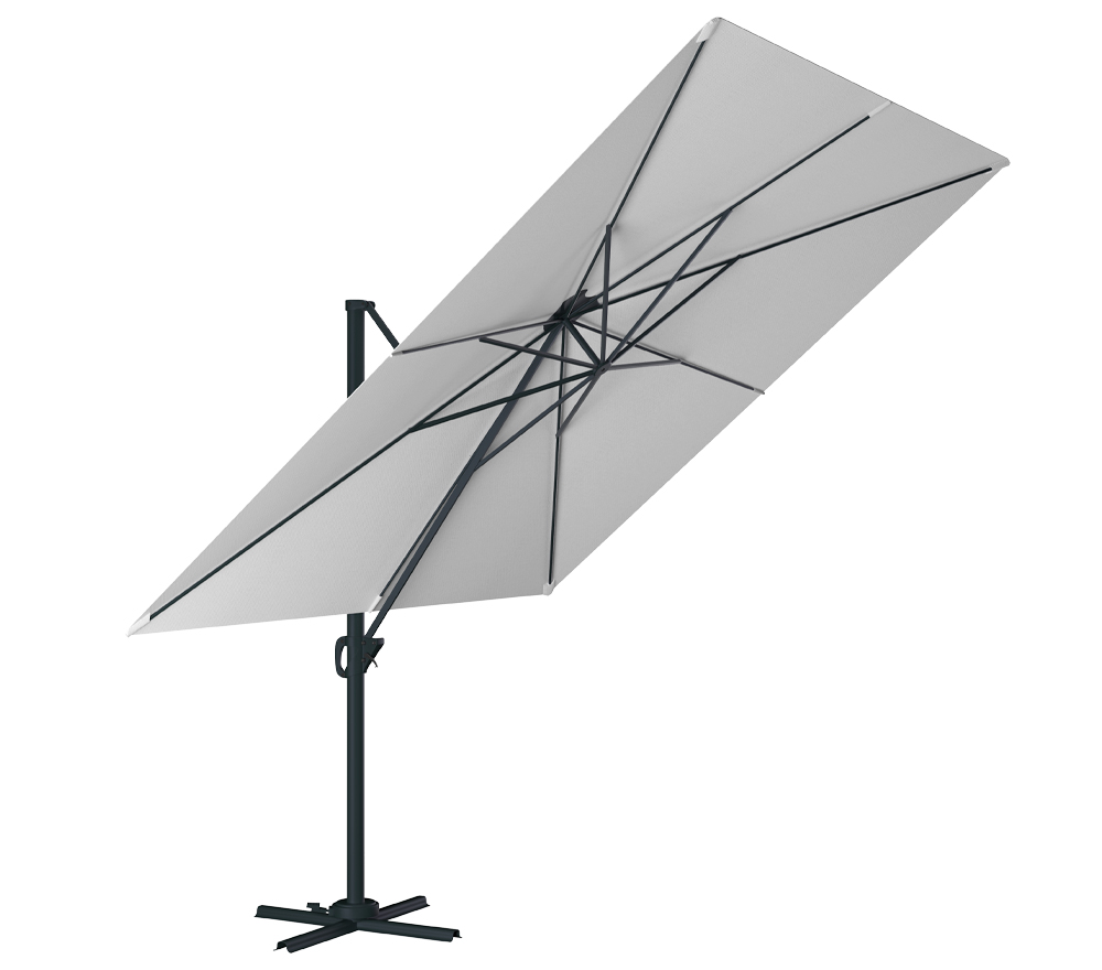 Cet élégant parasol de 4x3 m est constitué d'aluminium de couleur anthracite et se monte facilement et seul.