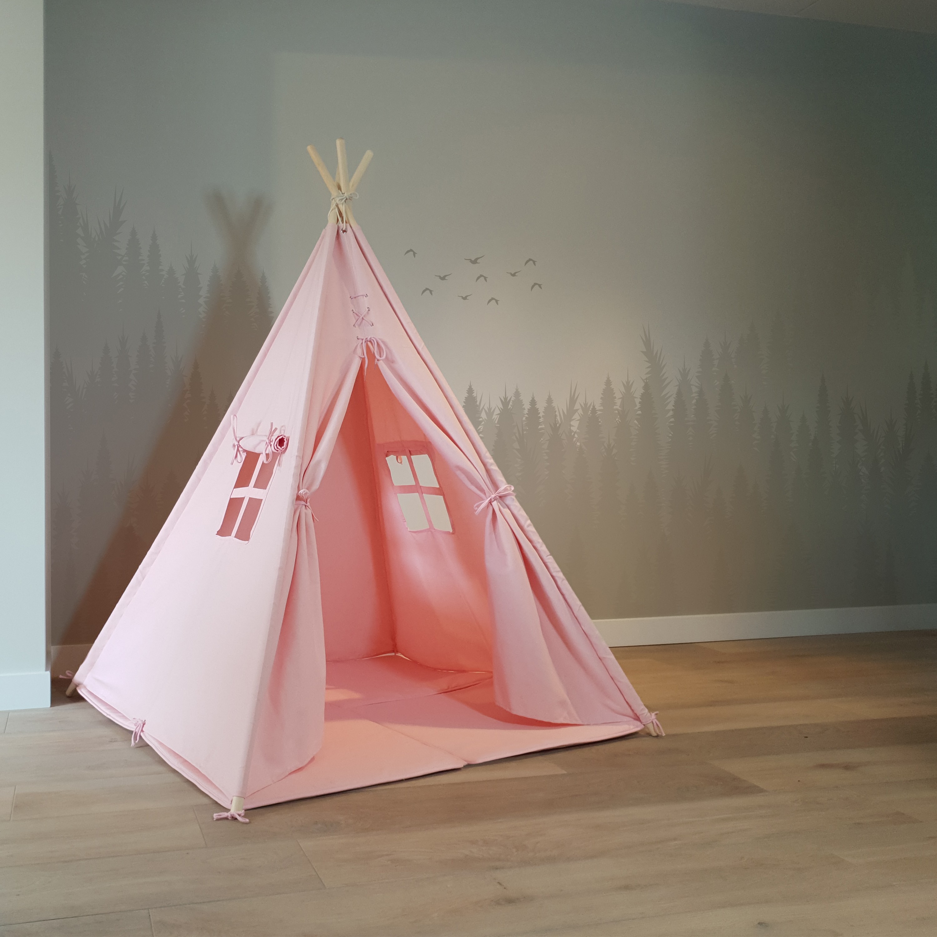 SUNNY Alba Tente Tipi pour Enfants en ROSE | Tente de Jeu avec Tapis pour lintérieur / chambre | 120x120