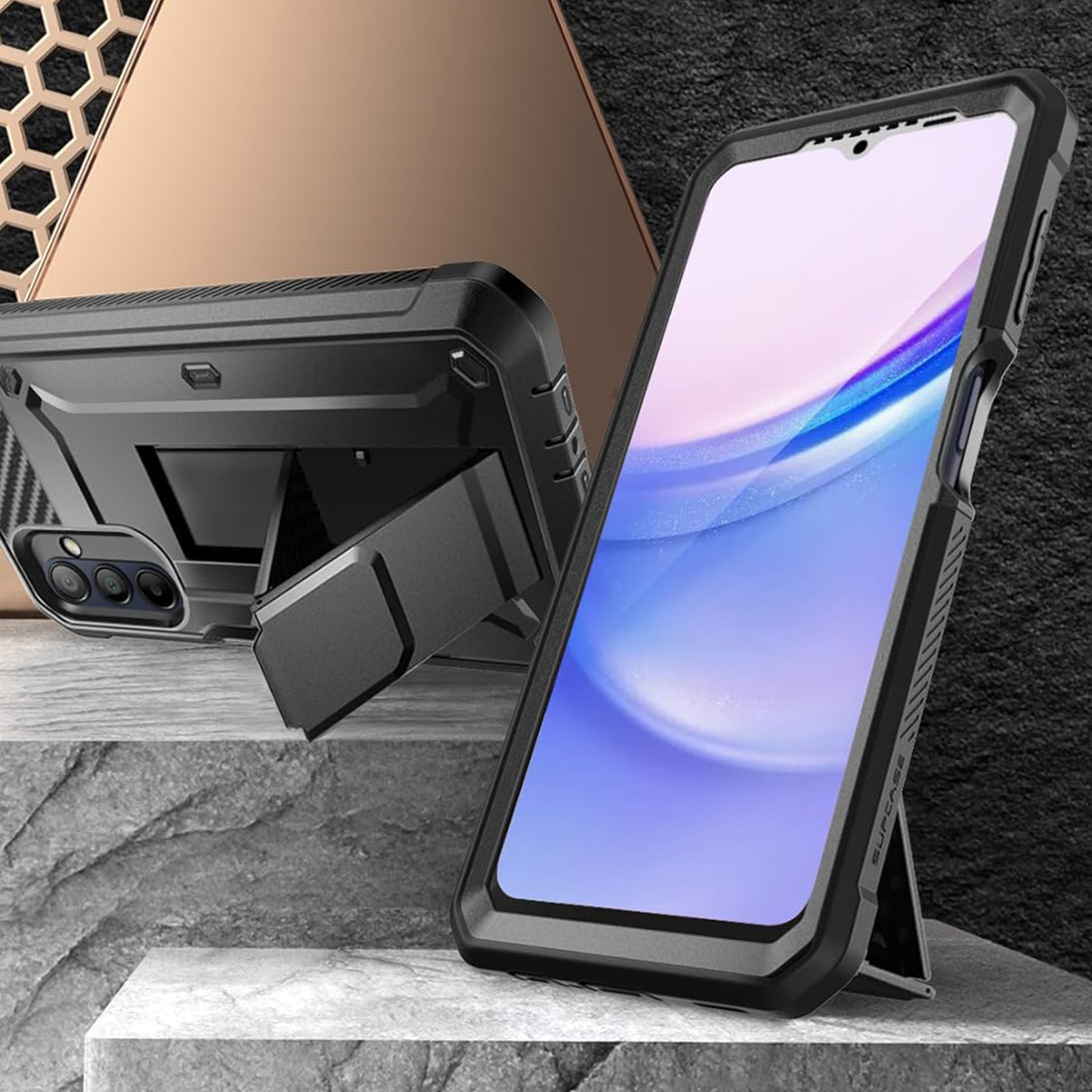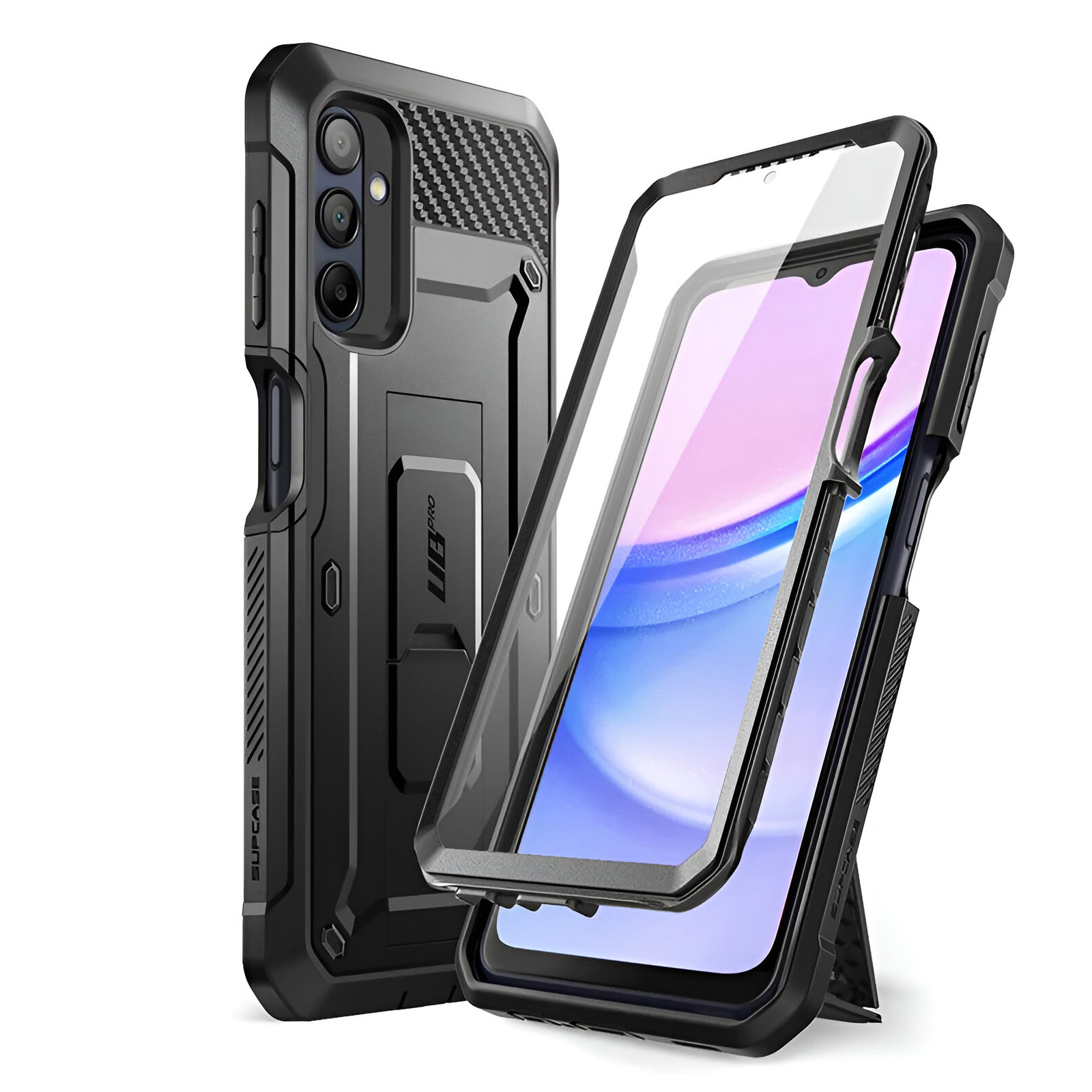 Coque intégrale Supcase Unicorn Beetle Pro pour Samsung Galaxy A15. Multicouche : polycarbonate + silicone gel. Clip ceinture. Anti-chutes : 1.2m de hauteur. Fonction support. Grips antidérapants. Fonctions accessibles, boutons redessinés.